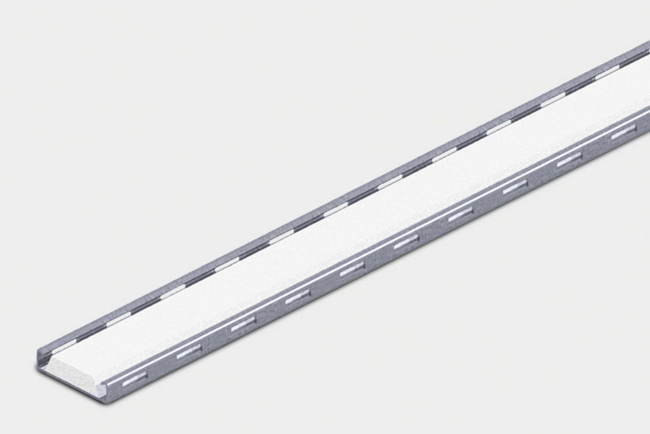 Die baulich zugelassene Schiene ist aus feuerverzinktem Stahl gefertigt und ermöglicht das sichere Befestigen und Einleiten von Lasten in Schienenlängs- und Schienenquerrichtung.