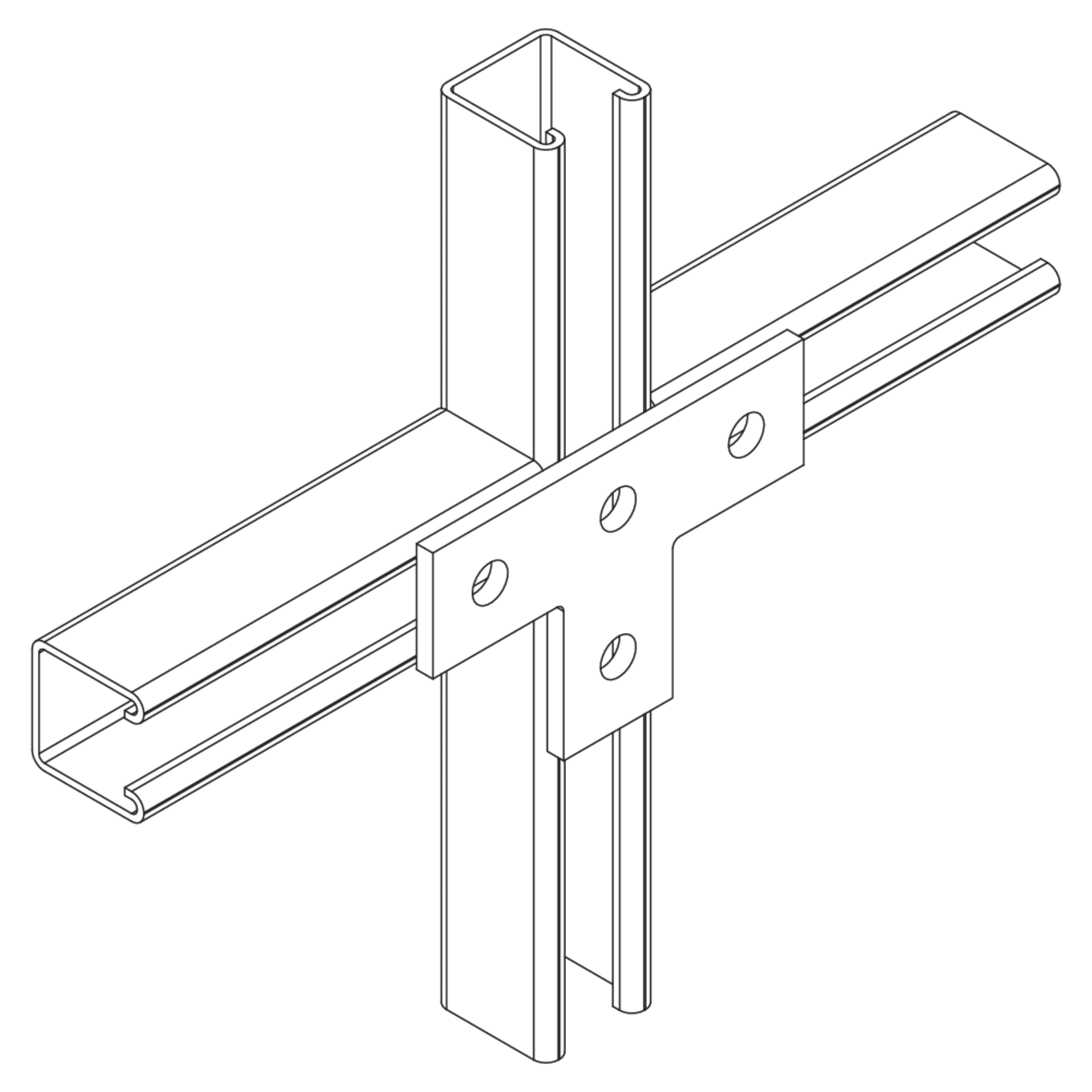 Mit dem Schienenverbinderabzweig AVA lassen sich Montageschienen als Kreuzung miteinander verbinden. Er besteht aus tauchfeuerverzinktem Stahl.