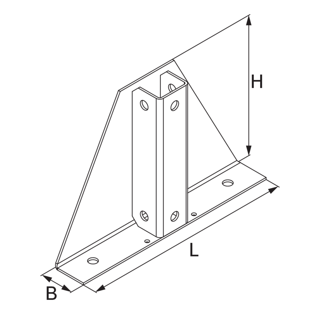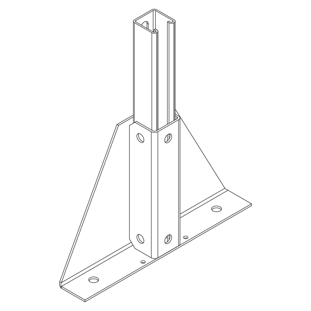 Die Kopfplatte BGF 41 dient der Befestigung von Montageschienen (A 41, KHA 41, KHAL 41). Sie wird an diesen verschraubt und an Decke oder Boden gedübelt. Sie besteht aus tauchfeuerverzinktem Stahl. Befestigungszubehör muss, je nach Anwendungsfall, gesondert bestellt werden.