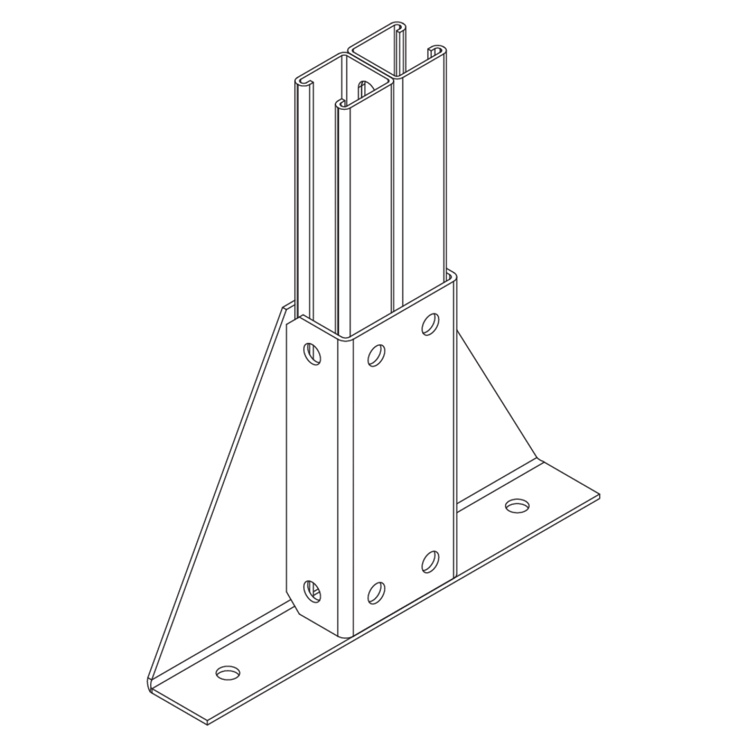 Die Kopfplatte BGF 82 dient der Befestigung von Montageschienen (KHA 82). Sie wird an diesen verschraubt und an Decke oder Boden gedübelt. Sie besteht aus tauchfeuerverzinktem Stahl. Befestigungszubehör muss, je nach Anwendungsfall, gesondert bestellt werden.