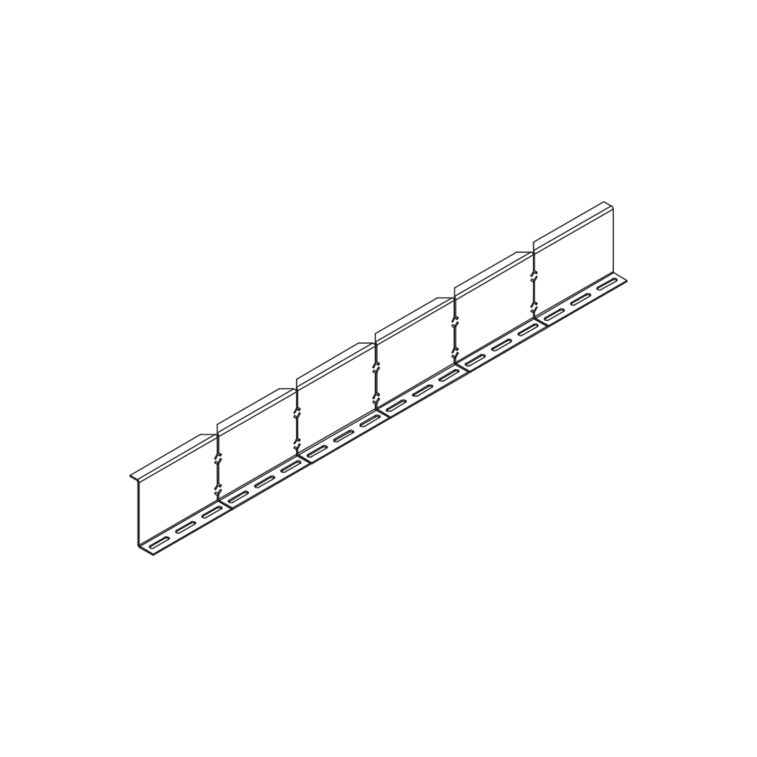 Der variable Bodenkanal-Trennsteg BKRTV 110 eignet sich insbesondere für Formteile und damit verbundene Richtungsänderungen. Mithilfe des Trennstegs lassen sich Kabel und Leitungen mit unterschiedlichen Funktionen oder Spannungen räumlich voneinander getrennt im gleichen Bodenkanal führen. Darüber hinaus sorgen die Trennstege für eine optimale Ableitung der vertikalen Nutzlasten, die auf das System einwirken. Der Trennsteg wird mit dem Bodenkanal verschraubt. Er ist 110 mm hoch, 900 mm lang und besteht aus sendzimir-feuerverzinktem Stahl.