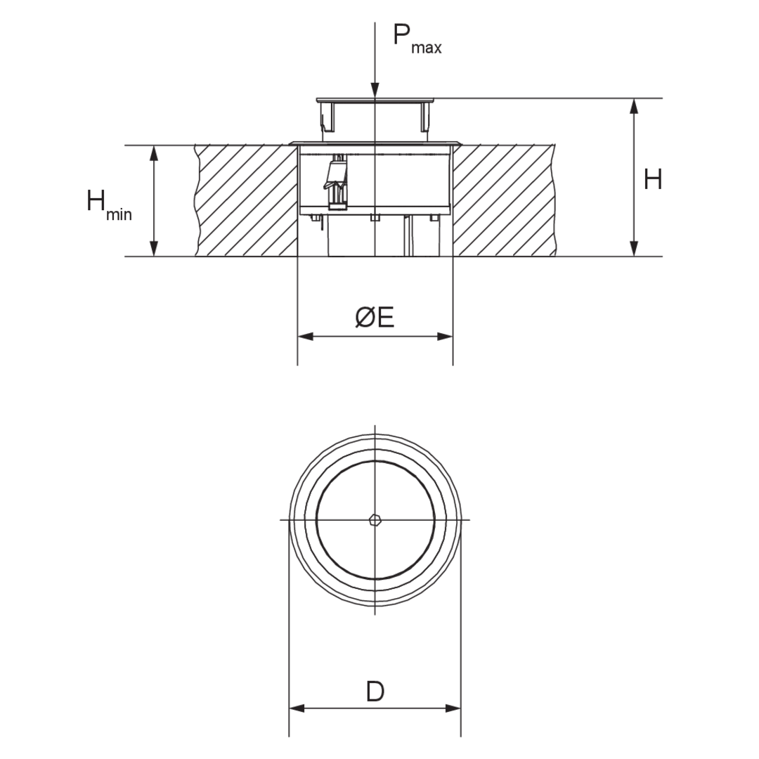 Einzelauslass mit zwei Bodensteckdosen, nass gepflegt, rund