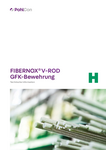 Die FIBERNOX® V-ROD gerader Stab sind Bewehrungsstäbe, die im Pultrusionsverfahren aus korrosionsresistenten Glasfasern mit Vinylesterharz gefertigt werden und auf max. Festigkeit und Dauerhaftigkeit ausgelegt sind. Sie überzeugen durch Alkalibeständigkeit, hohe Zugfestigkeit bei geringem Gewicht, Magnetfreiheit sowie elektrisch und thermisch isolierende Eigenschaften. Ihre besandete Oberfläche sorgt für optimalen Betonverbund. Die Bewehrungsstäbe sind sehr vielseitig, z. B. im Tunnel- oder Brückenbau einsetzbar und mit einem Elastizitätsmodul von 60.000 N/mm², einer garantierten Zugfestigkeit von 1.000 N/mm², einem Durchmesser von 6 bis 32 mm und in diversen Längen erhältlich.