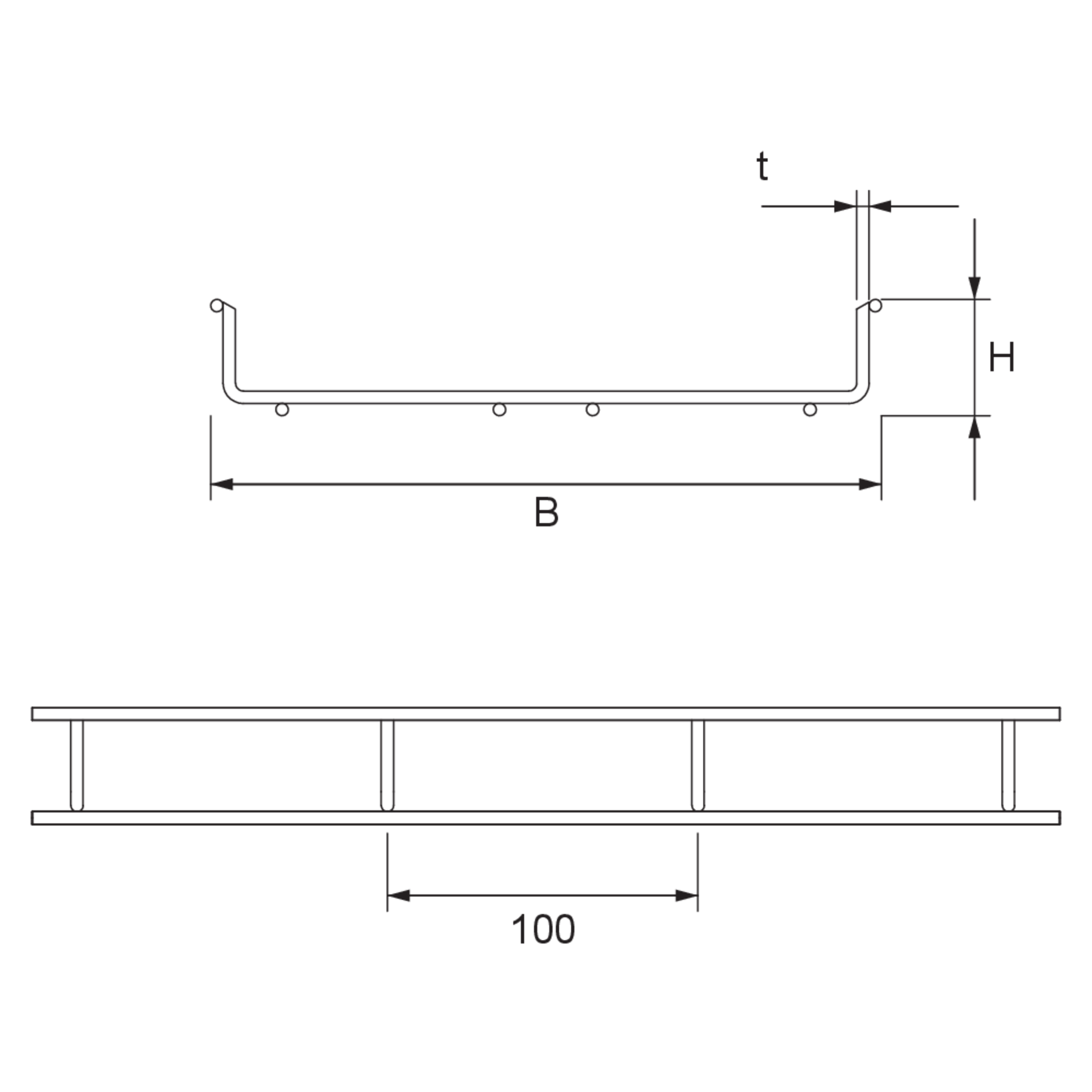 Gitterbahn, U-förmig, Höhe = 38 mm