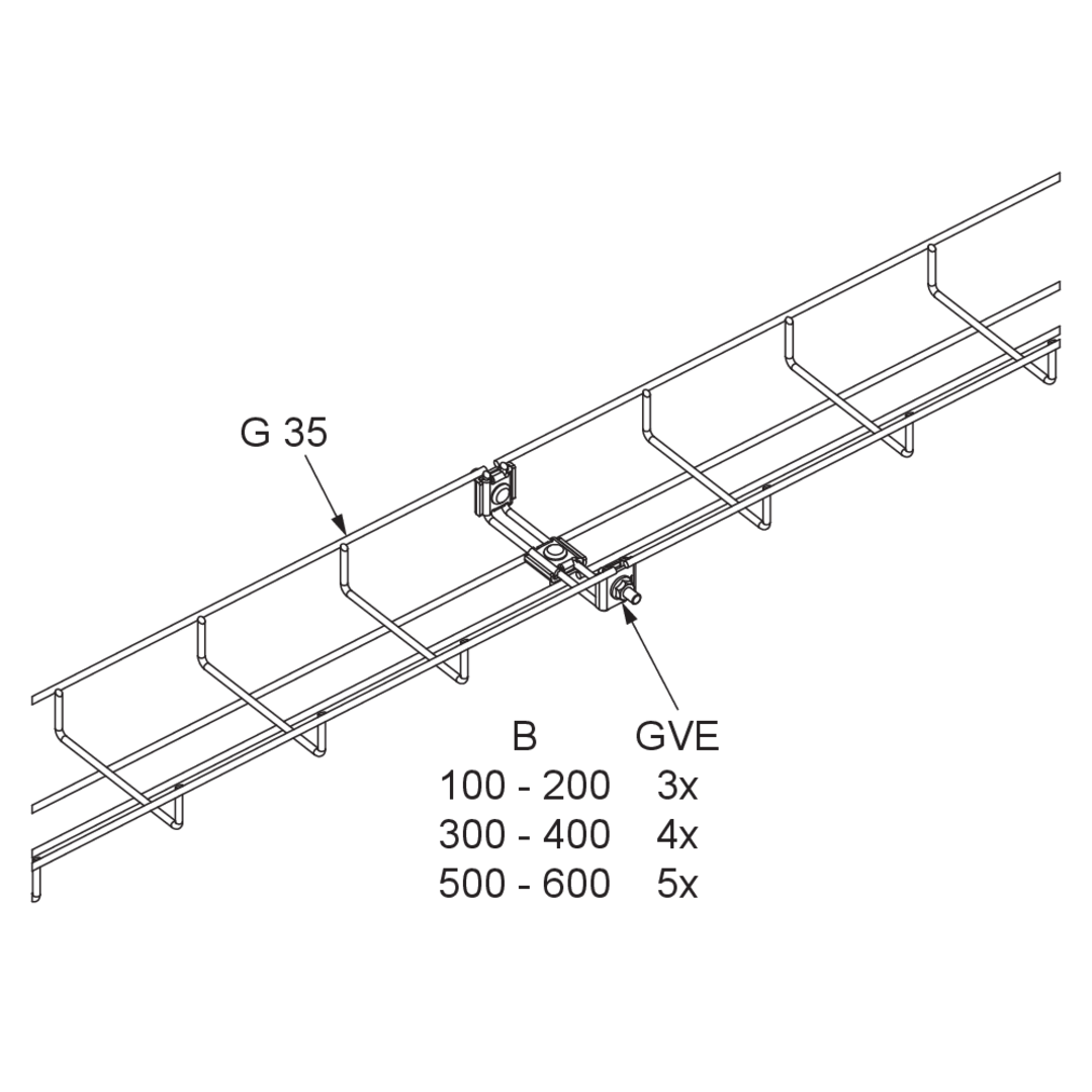 Mit den Gitterbahn-Verbindern GVE lassen sich Gitterbahnen vom Typ G 35 schnell und einfach in gerader Richtung montieren. Aber auch bei horizontalen Richtungsänderungen kommen die Gitterbahn-Verbinder GVE zum Einsatz. Der GVE ist ein fertiges Set und durch verschiedene Materialien und Oberflächen können die Korrosionsanforderungen unterschiedlichster Anwendungsgebiete erfüllt werden.