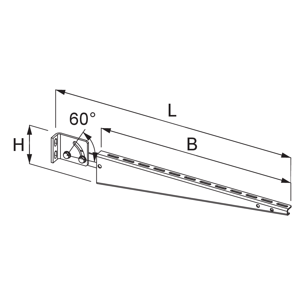 Die Schwenkkonsole KWD ist für den Einsatz an geneigten Wänden bis 60° vorgesehen.