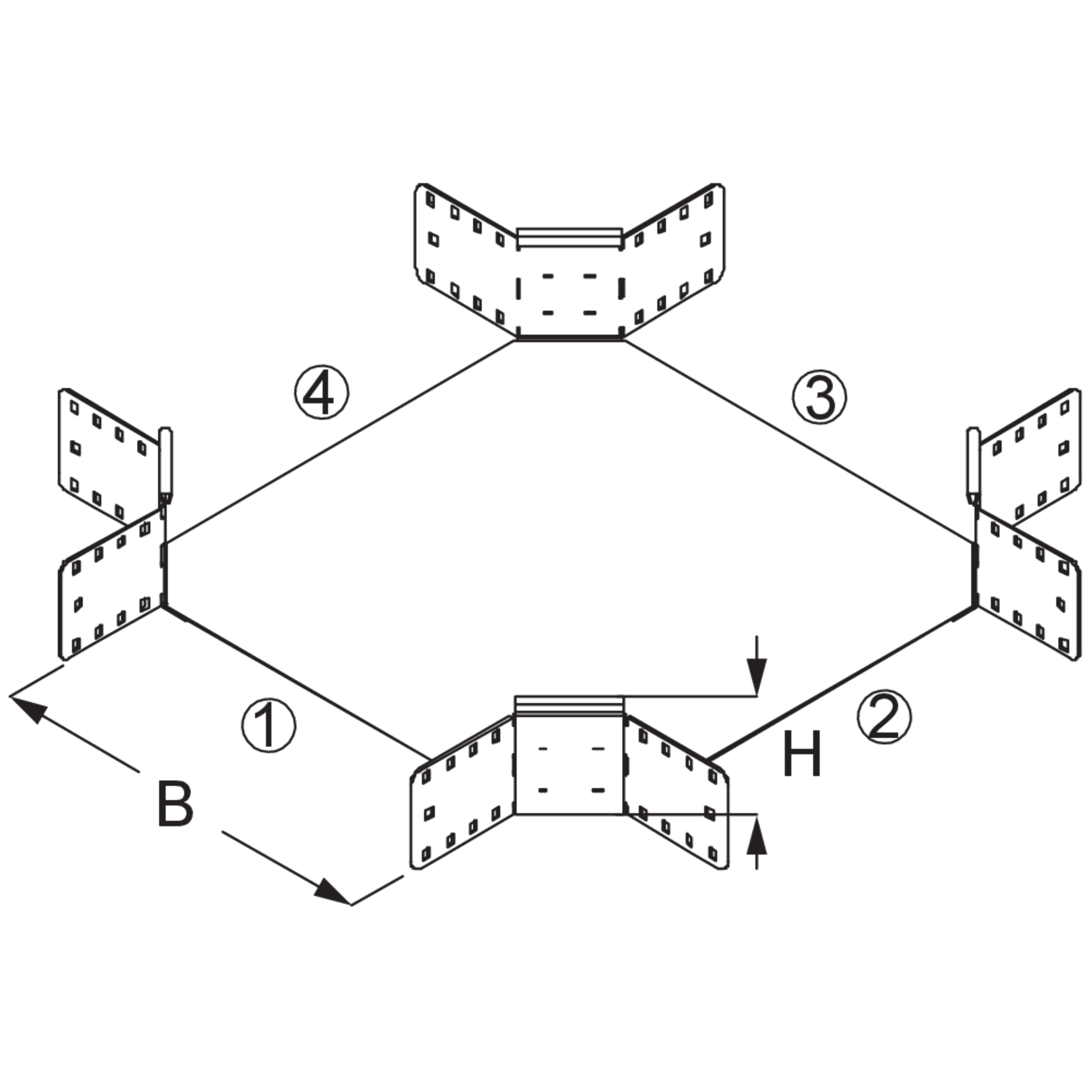 Kabelrinnen-Kreuzung, Höhe = 110 mm