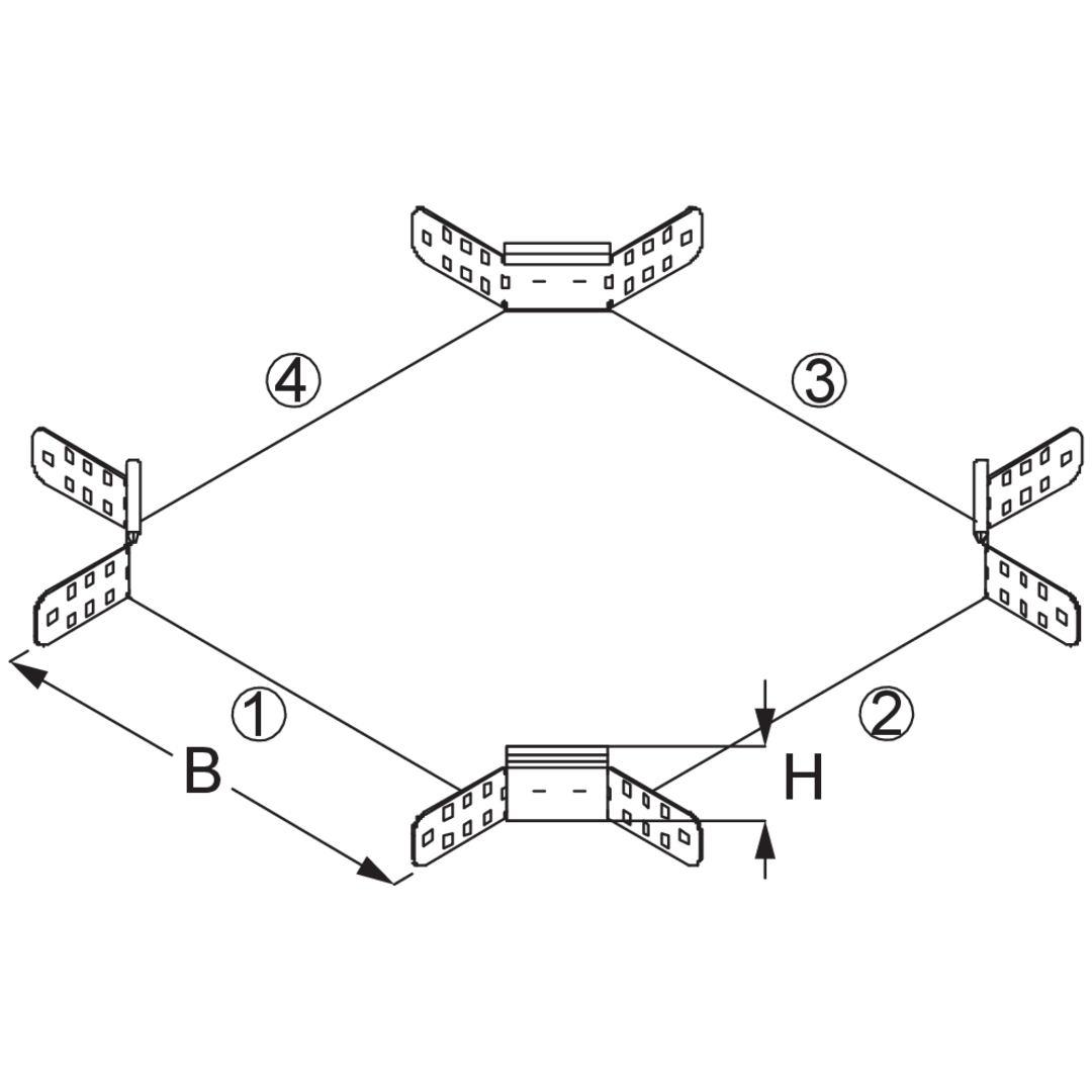 Kabelrinnen-Kreuzung, Höhe = 60 mm
