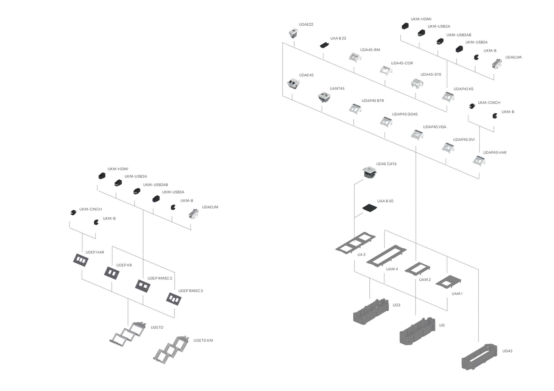 Bei den Bauelementen UDAP45-DVI handelt es sich um 1-fache Datendosenabdeckungen aus dem Sortiment der Installationsgeräte für Unterflursysteme. Sie werden in einem Winkel von 35° in die Anschlussdosen gesteckt. In ihre Einbauöffnungen mit den Maßen 11,4x28 mm lassen sich anschließend 45x45 mm große Steckverbinder des Typs DVI aufnehmen. Die Abdeckungen sind aus hochwertigem Polyamid in der Farbe Schwarz gefertigt.