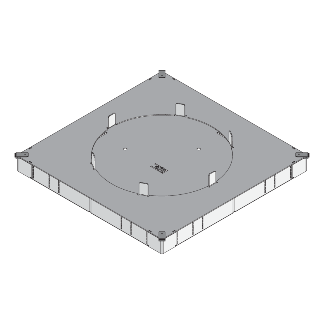 Die UDO350 3R Bodendose ist eine nach DIN EN 50085-2-2 zertifizierte Zug- und Einbaudose für das estrichüberdeckte Kanalsystem UKO. Gefertigt aus sendzimir-feuerverzinktem Stahlblech nach DIN EN 10346 bietet sie hohe Stabilität und Korrosionsschutz. UDO350 3R eignet sich für die Kanalbreiten 190, 250 und 350 mm.