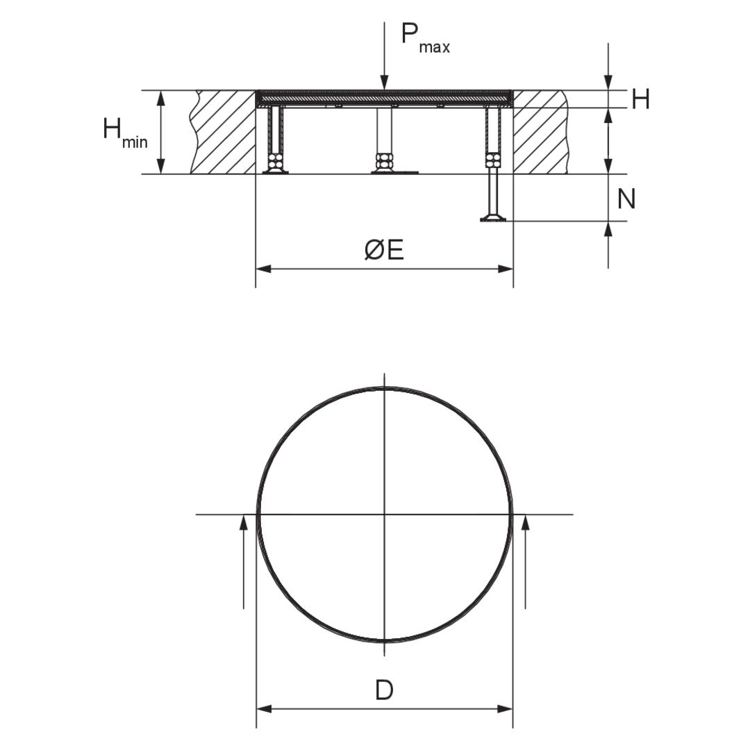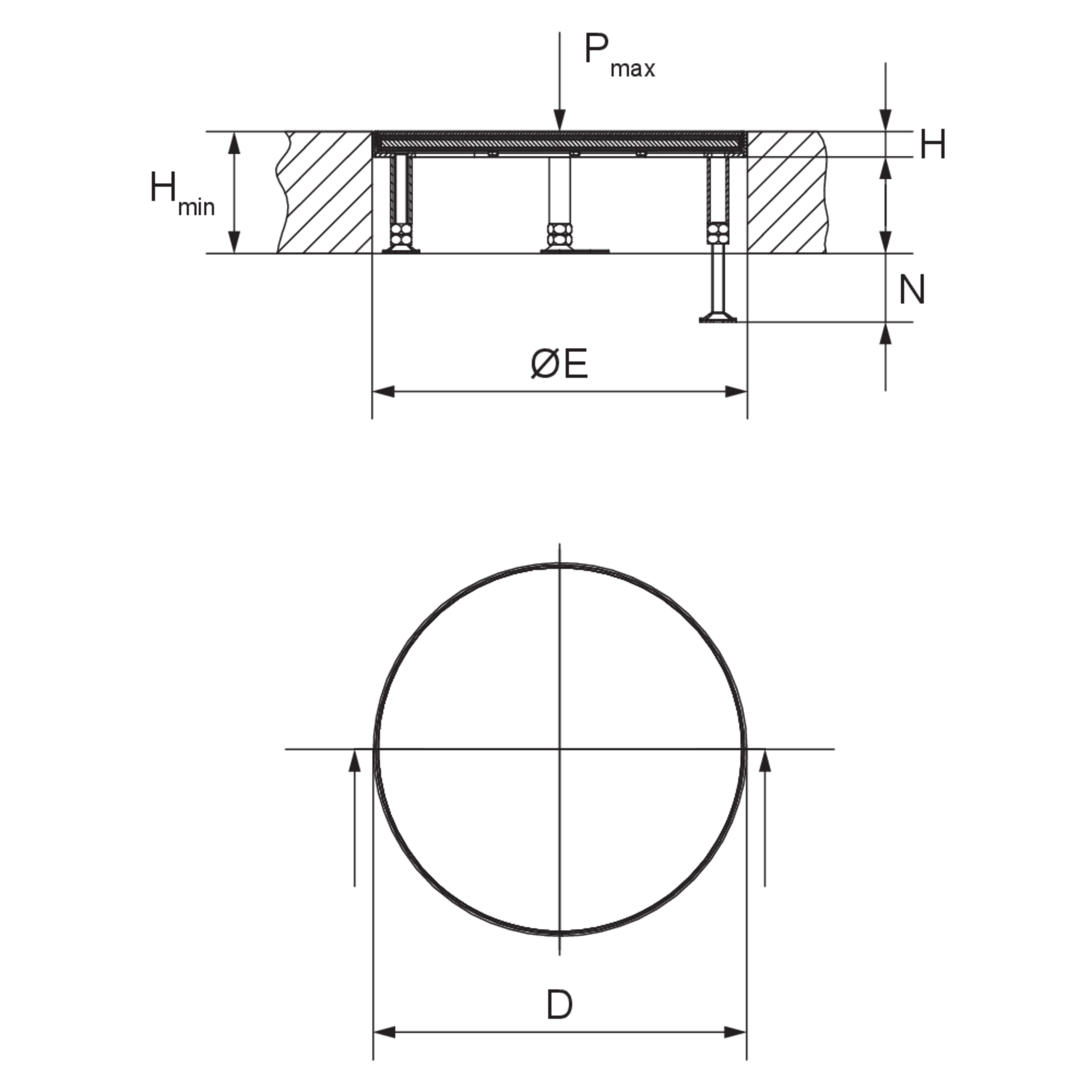 Kassetteneinheit,Höhe19 mmmin. Einbauhöhe100 mmNivellierbereich55 mmDurchmesser (mm)304 mmmax. Belastung4.00 kNEinbaumaß rund307 mmIP-Schutzgrad im nicht genutzten ZustandIP 54Gewicht je Lagermengeneinheit5.500 kgInklusivzubehör