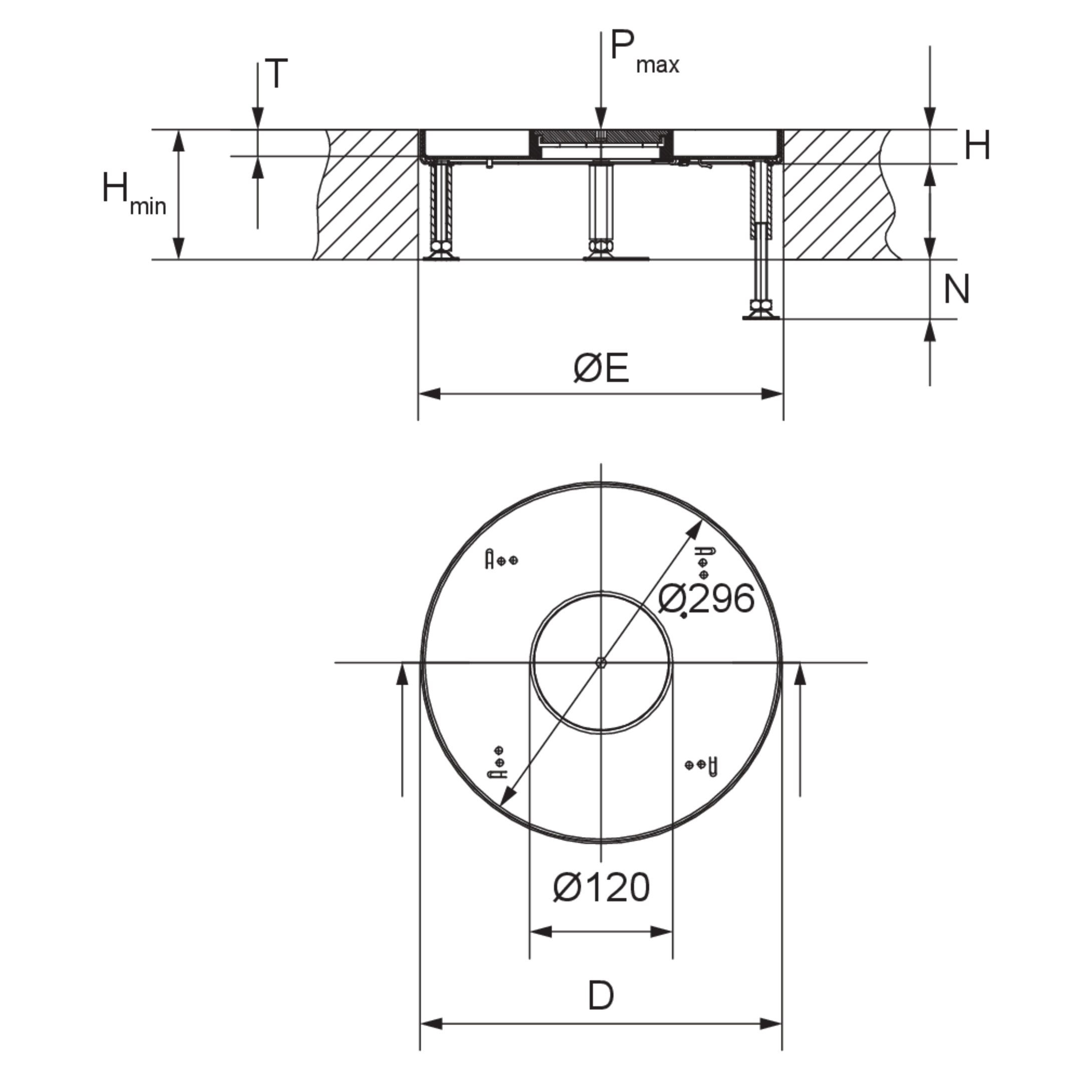 Kassetteneinheit Maschinenreinigung,Höhe29 mmmin. Einbauhöhe110 mmNivellierbereich55 mmDurchmesser (mm)304 mmmax. Belastung2.00 kNmax. Anzahl installierbarer Gerätebecher3Einbaumaß rund307 mmIP-Schutzgrad im genutzten ZustandIP 43IP-Schutzgrad im nicht genutzten ZustandIP 66Tiefe der Bodenbelagaussparung22 mmGewicht je Lagermengeneinheit2.965 kg