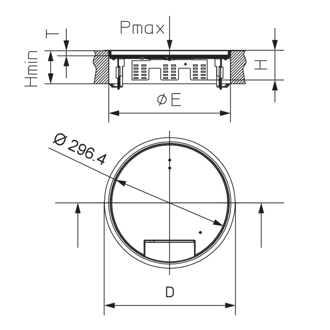 Kassetteneinbaueinheit,Höhe85 mmmin. Einbauhöhe100 mmDurchmesser (mm)330 mmmax. Belastung2.00 kNmax. Anzahl installierbarer Gerätebecher3Einbaumaß rund307 mmIP-Schutzgrad im genutzten ZustandIP 20IP-Schutzgrad im nicht genutzten ZustandIP 30Tiefe der Bodenbelagaussparung22 mmGewicht je Lagermengeneinheit2.821 kgInklusivzubehör