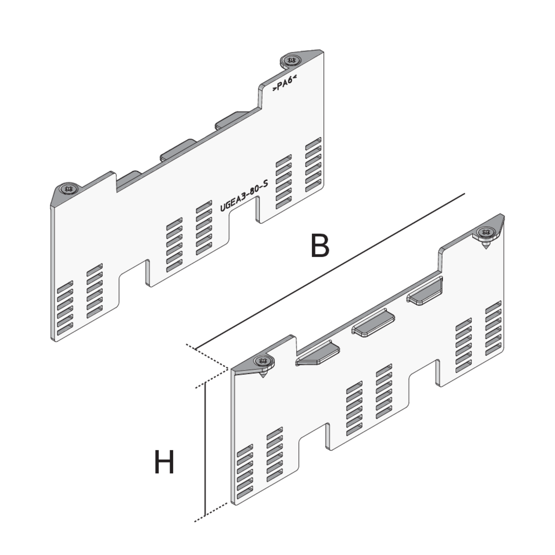 Rastleiterset,Höhe56 mmBreite186 mmmax. Anzahl installierbarer Gerätebecher3FarbeRAL 9011 (Graphitschwarz)Rastbereich20 mmGewicht je Lagermengeneinheit0.050 kg - UGEA3-80-S