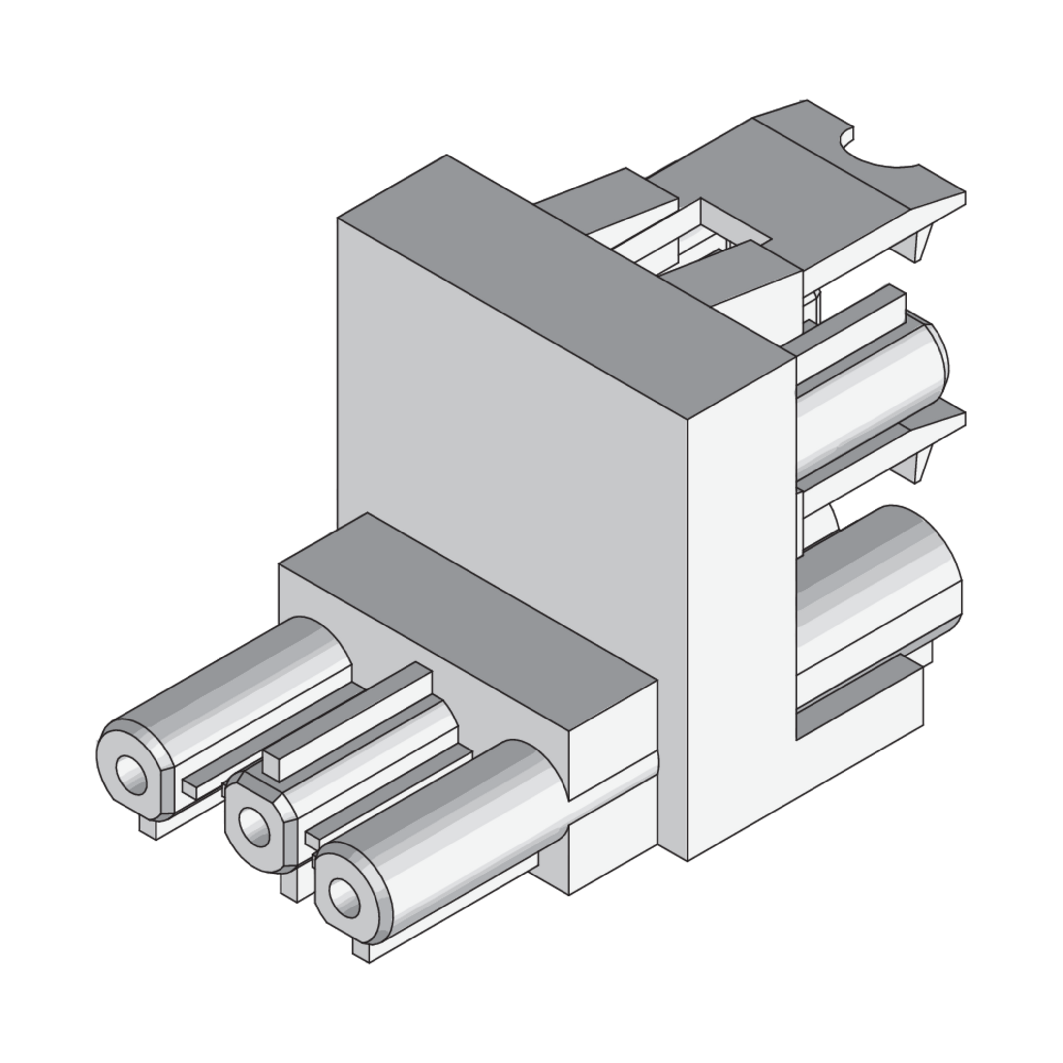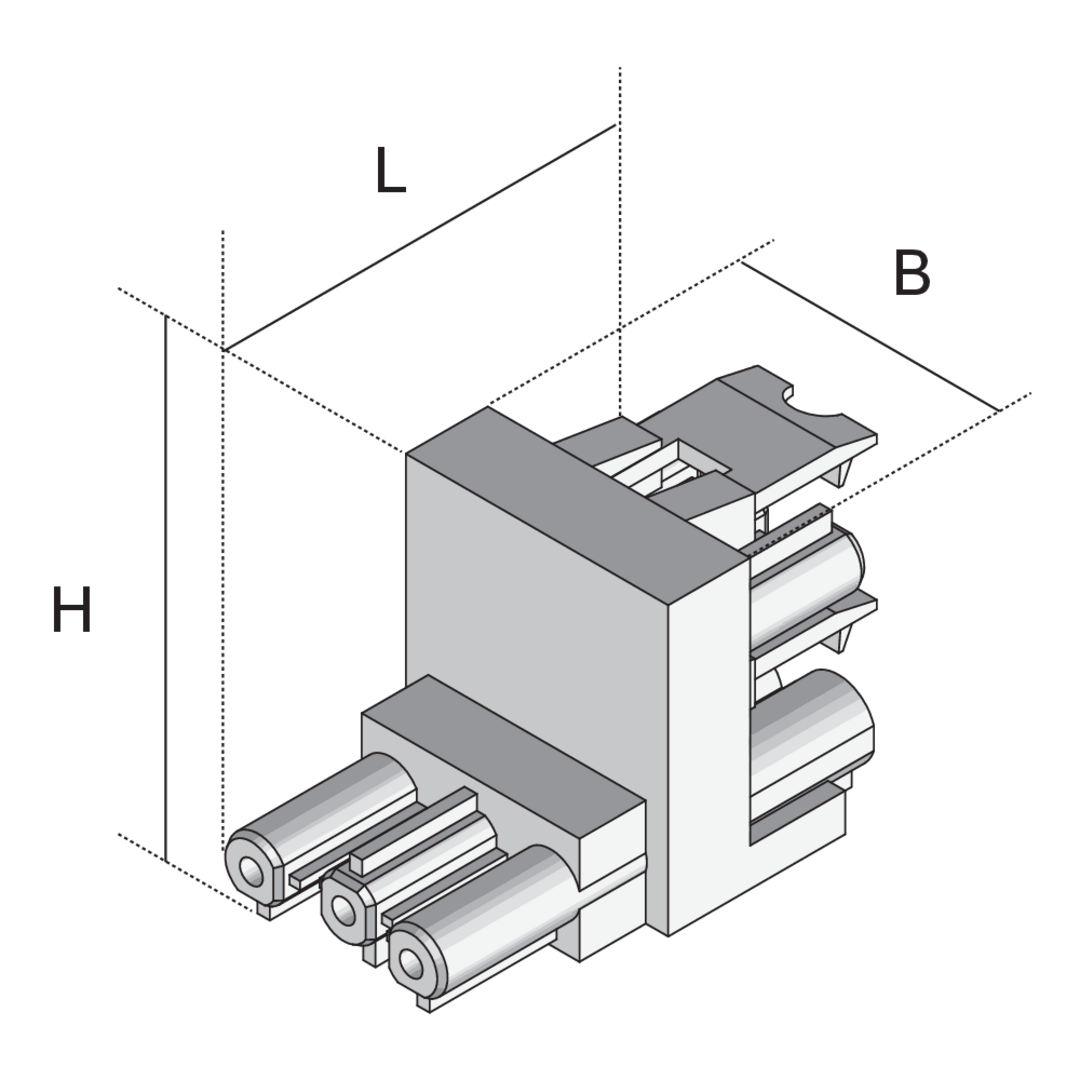 Bei den Bauelementen UVBHWI-2 handelt es sich um Verteilerblöcke des Herstellers Wieland. Die Verteiler besitzen eine Verriegelung und einen Eingang (1x3-polig) sowie Ausgänge (2x3-polig) mit Durchgangsverdrahtung. Die Blöcke sind aus Polyamid gefertigt.