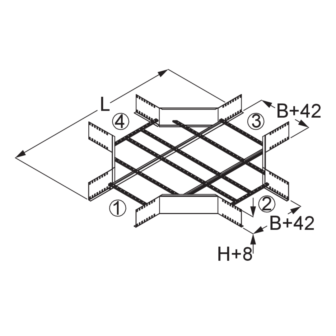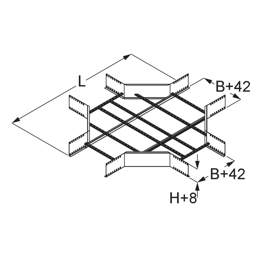 Weitspannkabelleiter-KreuzungHöhe200 mmBreite300 mmLänge1767 mmGewicht je Lagermengeneinheit35.470 kgInklusivzubehör - WLK 200-40F