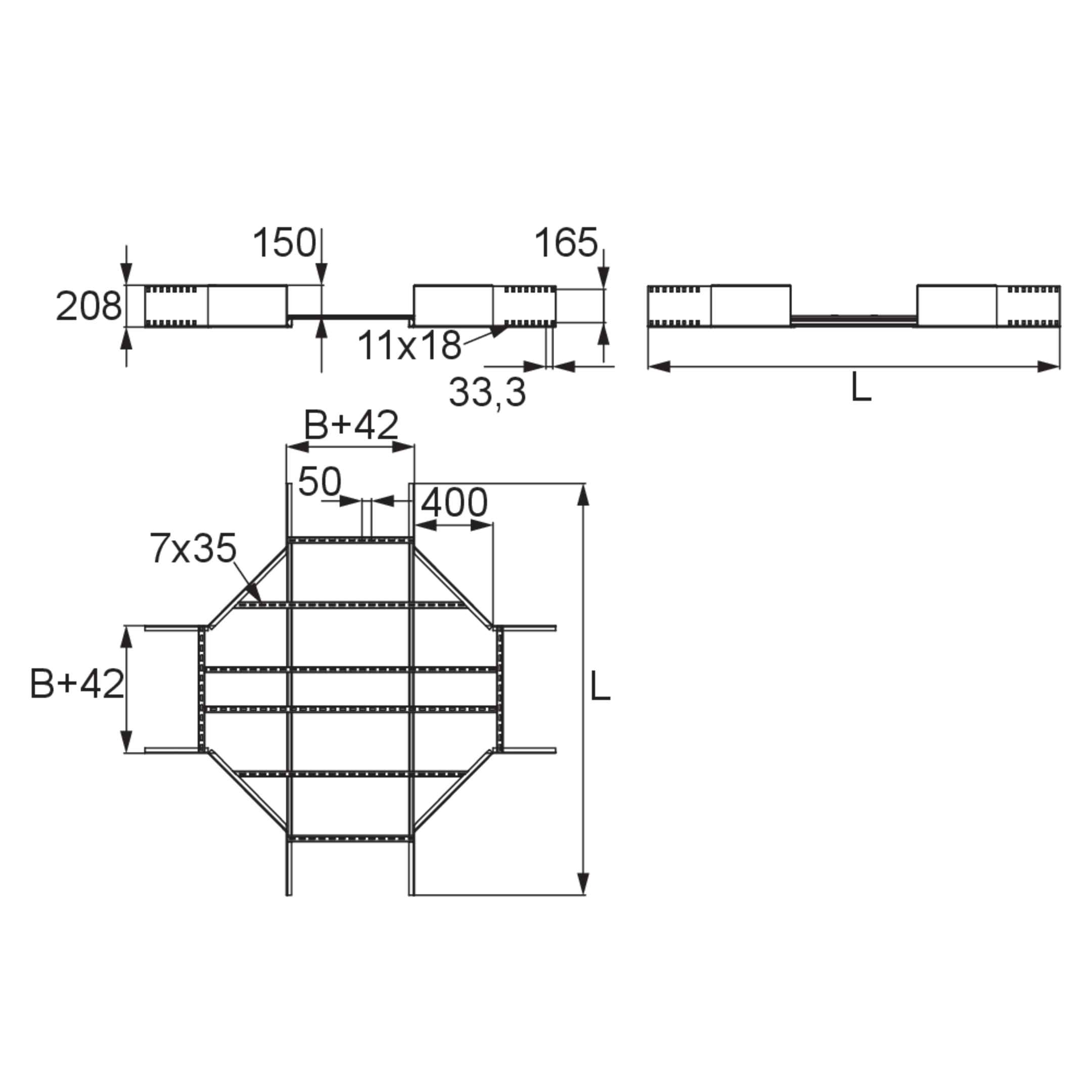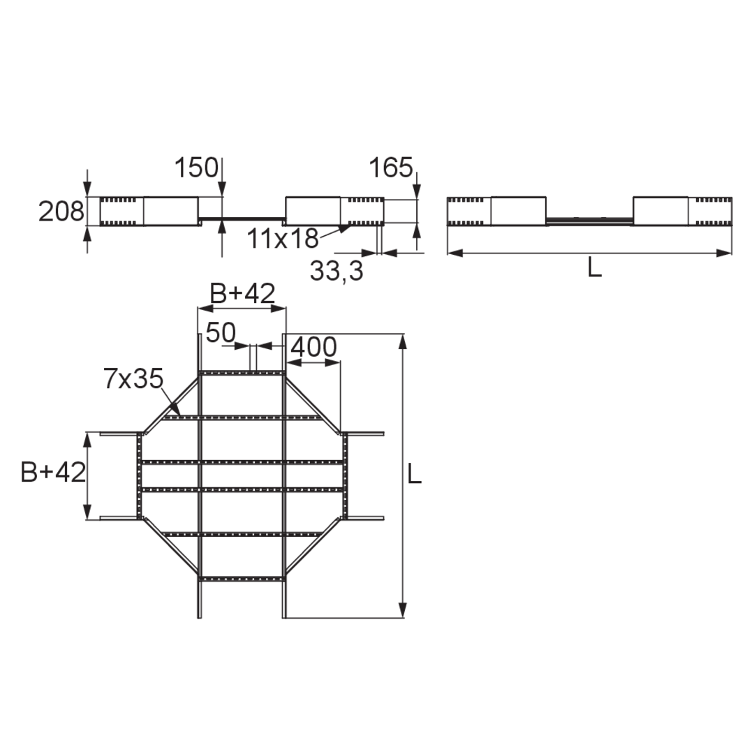 Weitspannkabelleiter-KreuzungHöhe200 mmBreite400 mmLänge1867 mmGewicht je Lagermengeneinheit36.410 kgInklusivzubehör - WLK 200-50F