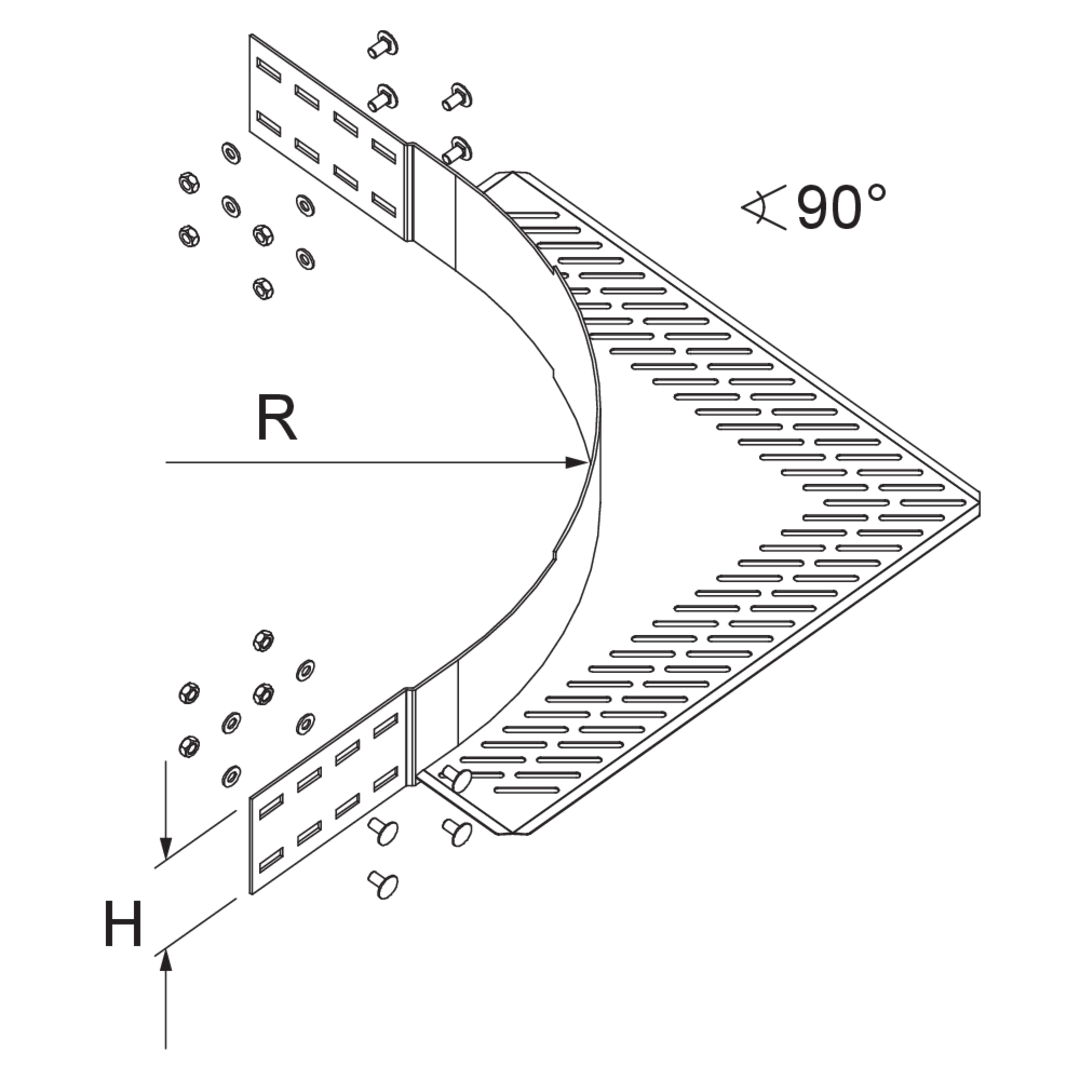 Weitspann-EckanbaustückHöhe115 mmRadius450 mmWinkel90°Gewicht je Lagermengeneinheit5.692 kgInklusivzubehör
