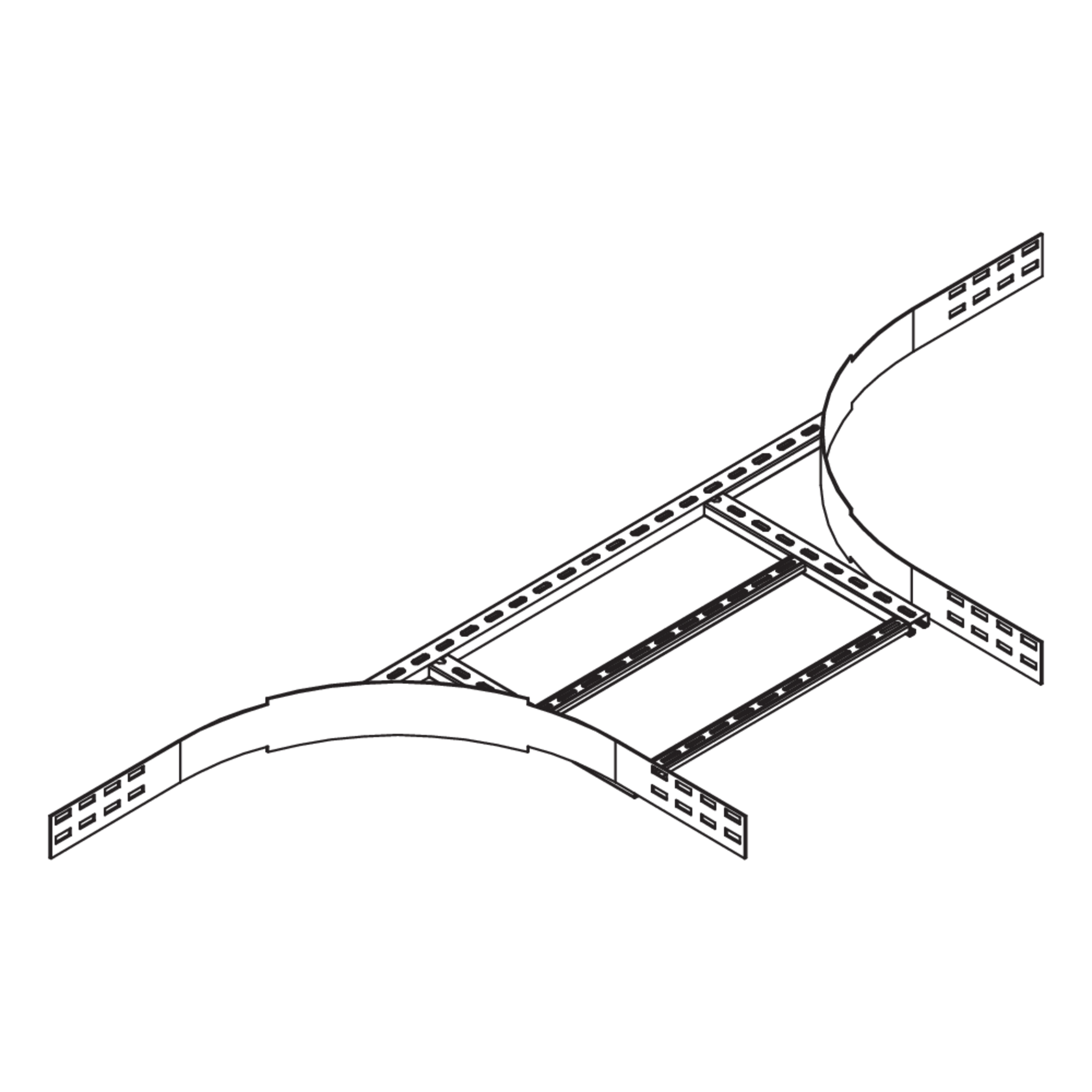 Weitspannkabelleiter-AnbauabzweigHöhe100 mmBreite500 mmLänge1935 mmRadius450 mmGewicht je Lagermengeneinheit8.460 kgInklusivzubehör - WPLAA 100-60E