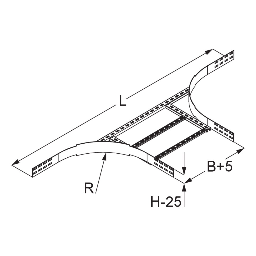 Weitspannkabelleiter-AnbauabzweigHöhe100 mmBreite600 mmLänge2035 mmRadius450 mmGewicht je Lagermengeneinheit8.740 kgInklusivzubehör