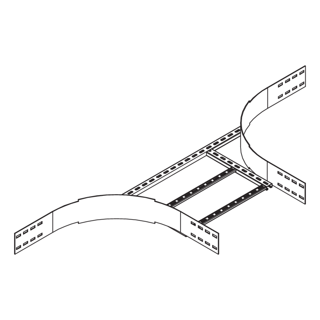Weitspannkabelleiter-AnbauabzweigHöhe150 mmBreite400 mmLänge1835 mmRadius450 mmGewicht je Lagermengeneinheit11.750 kgInklusivzubehör - WPLAA 150-50F