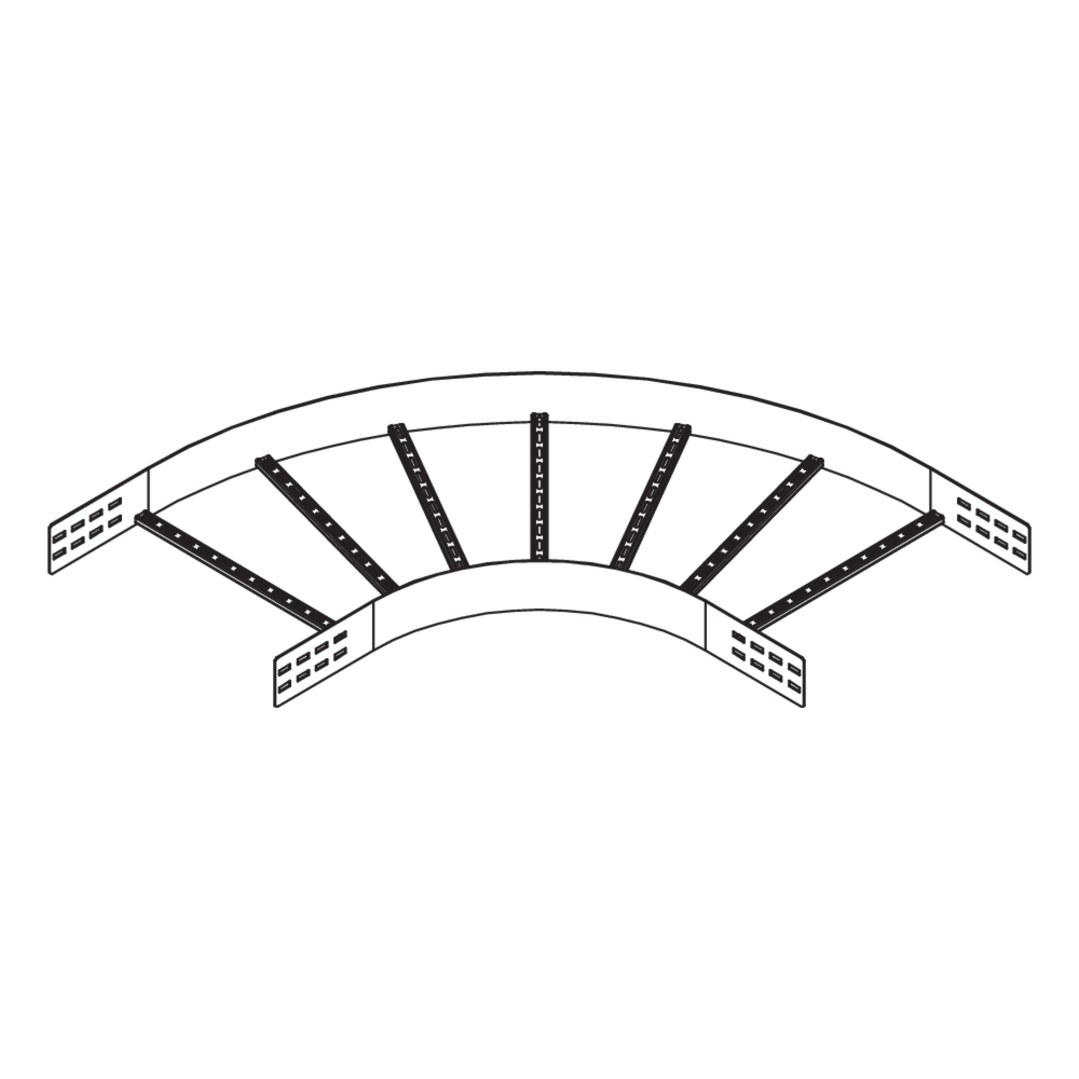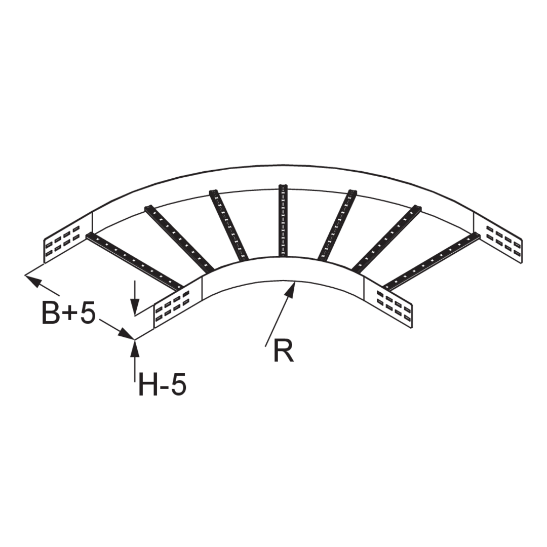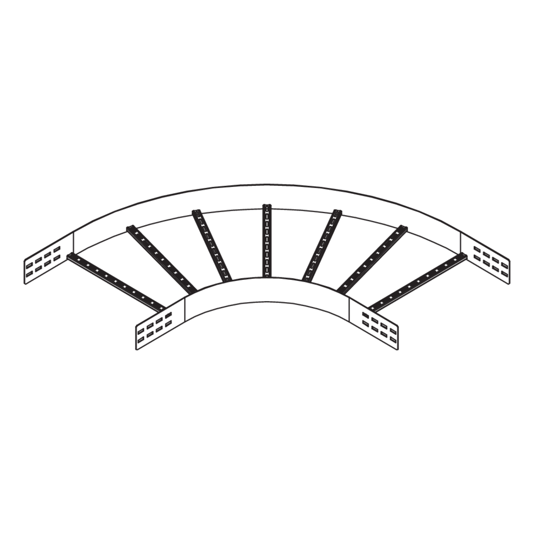 Weitspannkabelleiter-BogenHöhe120 mmBreite200 mmRadius450 mmRichtungsänderungHorizontalWinkel90°Gewicht je Lagermengeneinheit9.150 kgInklusivzubehör - WPLB 120-30F