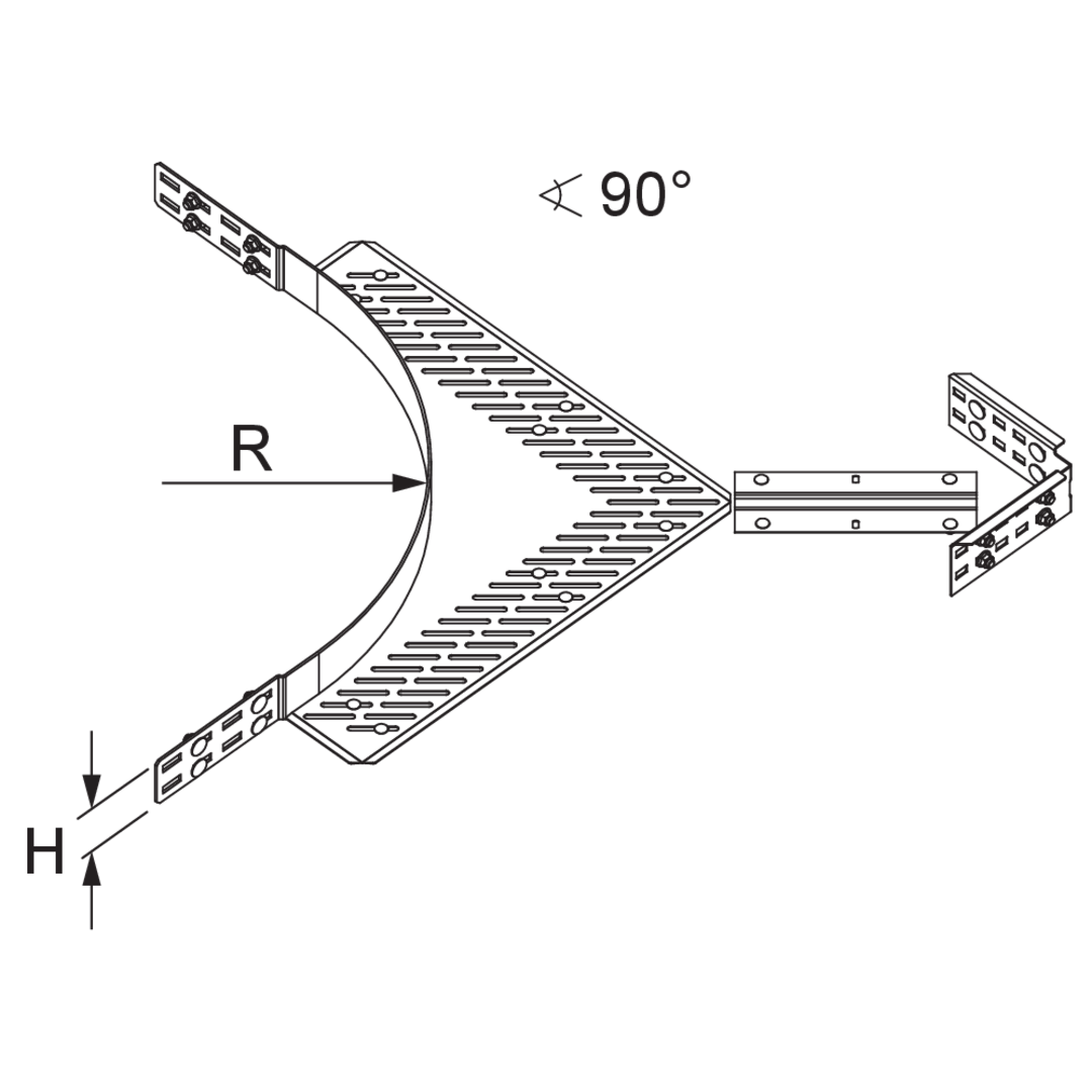 Weitspannkabelrinnen-Eckanbaustück-BogenHöhe70 mmRadius450 mmWinkel90°Gewicht je Lagermengeneinheit5.661 kgInklusivzubehör
