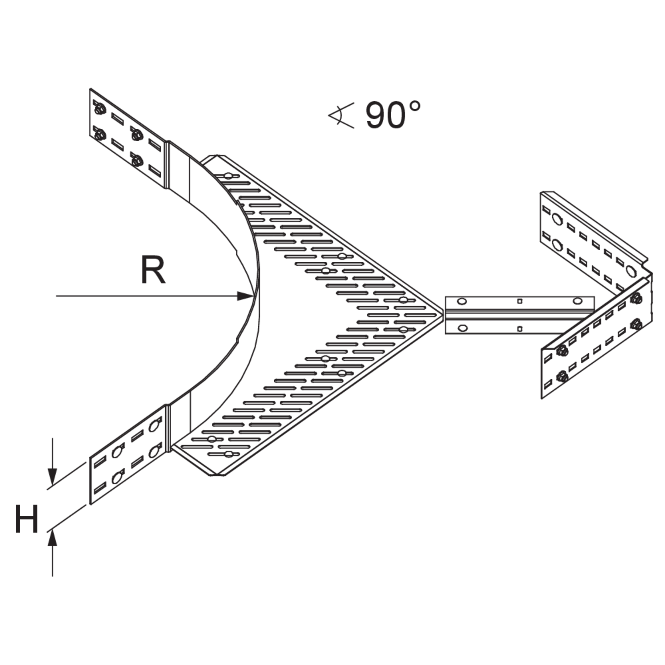Weitspannkabelrinnen-Eckanbaustück-Bogen