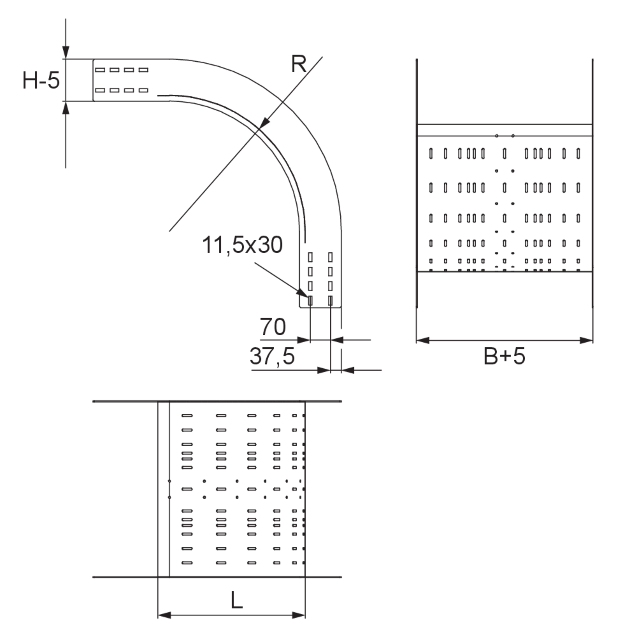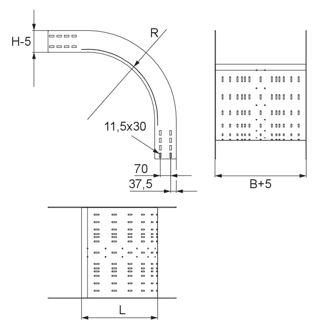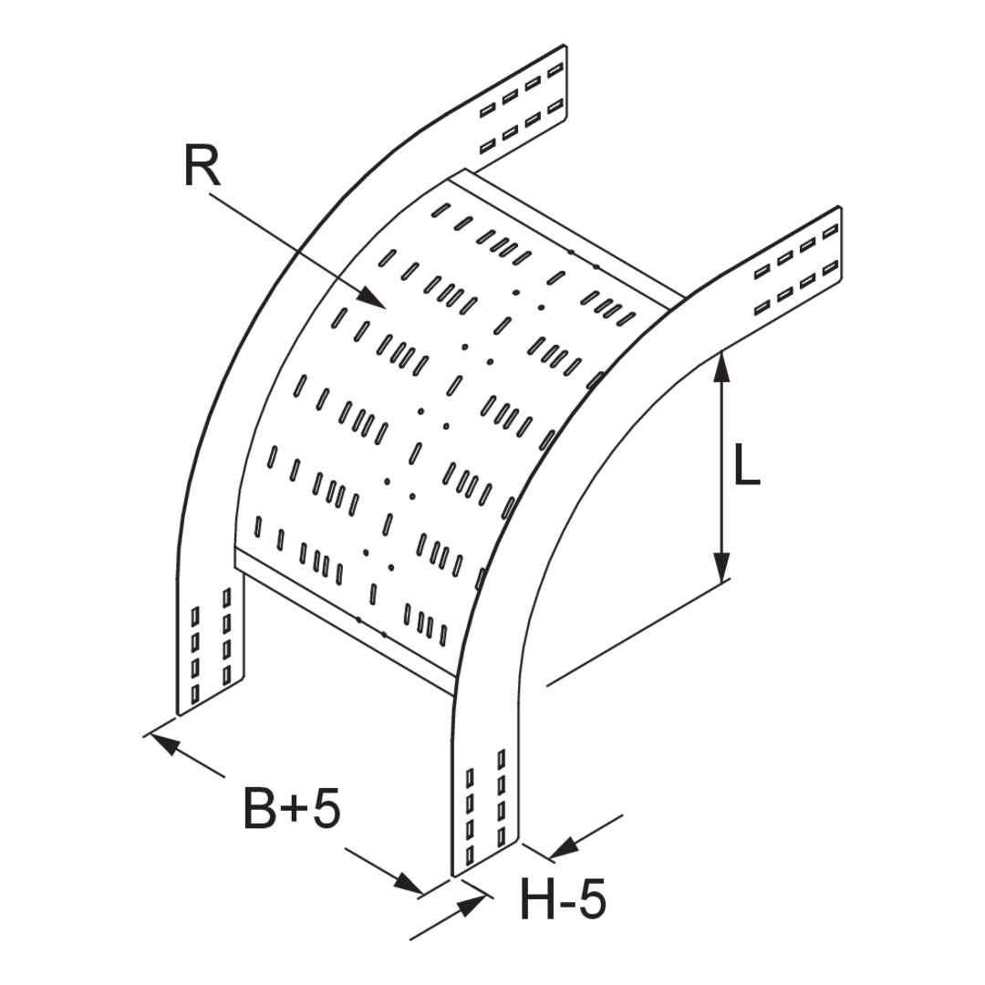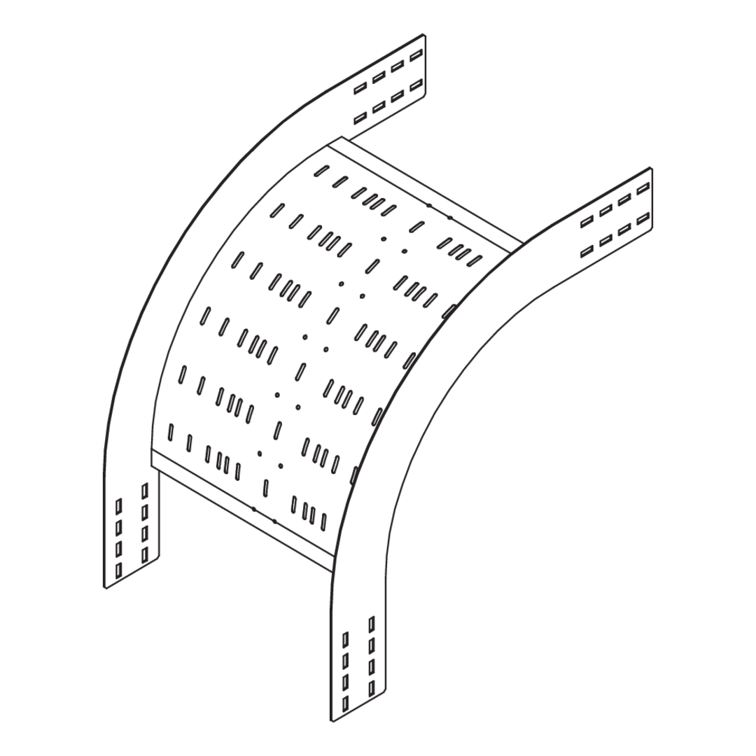 Das Weitspannkabelrinnen-Fallstück WPRF 150 mit integrierten Verbindern ermöglicht vertikale Richtungsänderungen der Kabelführung um 90° nach unten. Es eignet sich für Weitspannkabelrinnen mit einer Holmhöhe von 150 mm und weist Breiten von 200 bis 600 mm auf. Das Fallstück wird in die Weitspannkabelrinne eingeschoben und verschraubt. Anschließend wird die Anschlussrinne am Fallstück montiert. Es hat einen Radius von 470 mm.