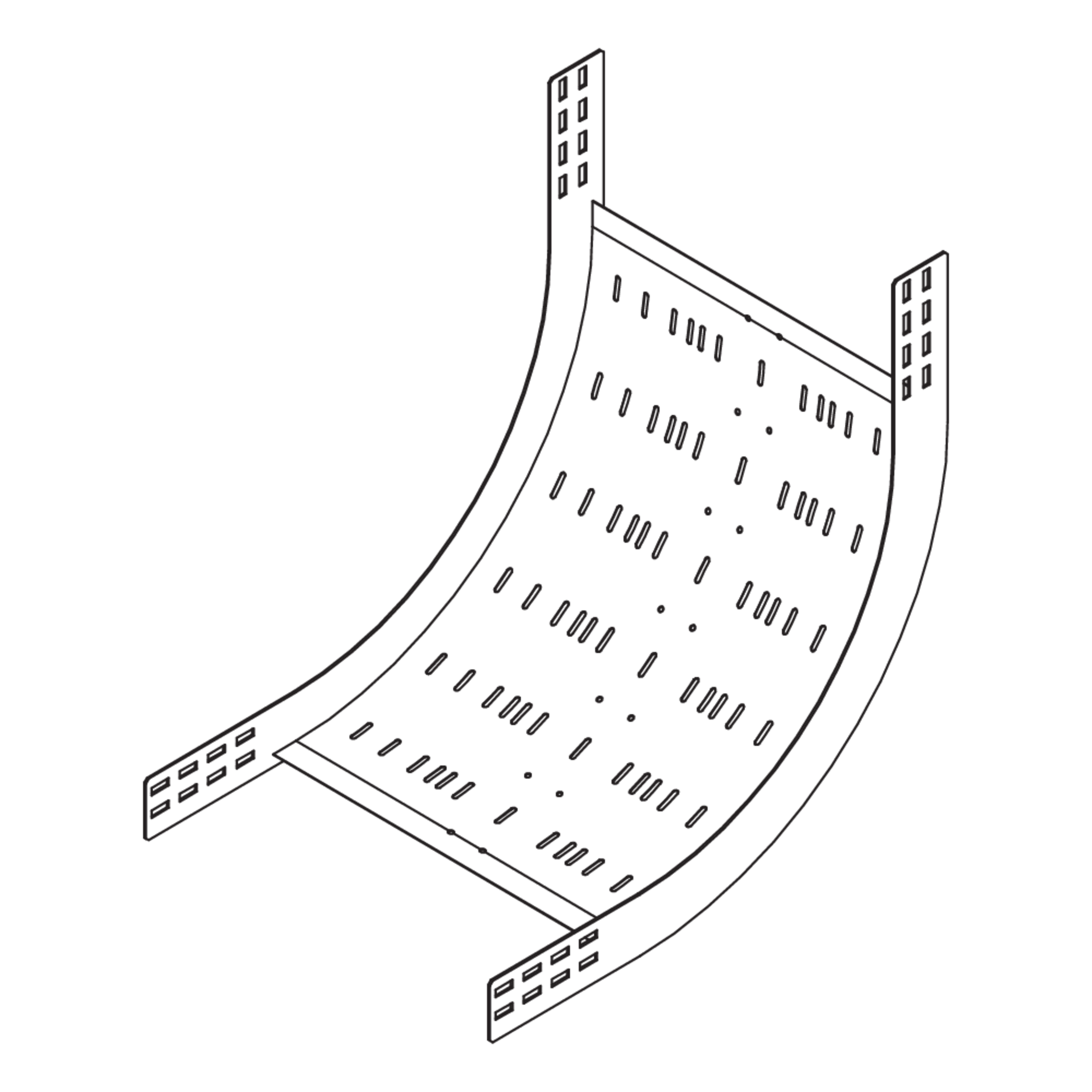 Das Weitspannkabelrinnen-Steigstück WPRS 100 mit integrierten Verbindern ermöglicht vertikale Richtungsänderungen der Kabelführung um 90° nach oben. Es eignet sich für Weitspannkabelrinnen mit einer Holmhöhe von 100 mm und weist Breiten von 200 bis 600 mm auf. Das Steigstück wird in die Weitspannkabelrinne eingeschoben und verschraubt. Anschließend wird die Anschlussrinne am Steigstück montiert. Es hat einen Radius von 525 mm.