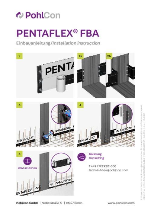 Der PENTAFLEX® FBA Fugenbandanschluss ist eine Klemmvorrichtung zur Verbindung von PENTAFLEX® Elementen mit Fugenbändern aller Art. Der Übergang erfolgt mittels Schraubklemmung. Mit dem Fugenbandanschluss FBA werden Arbeits- und Dehnfugenbänder systemkonform in das Abdichtungskonzept eingebunden.