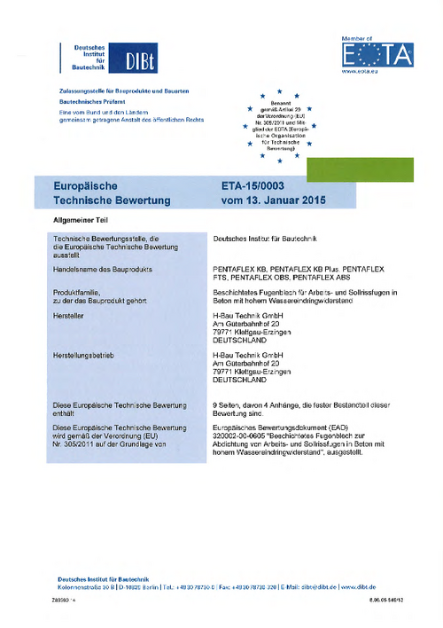 General building authority test certificate PENTAFLEX® KB, FTS, OBS, ABS, Modul (general technical approval certificate)