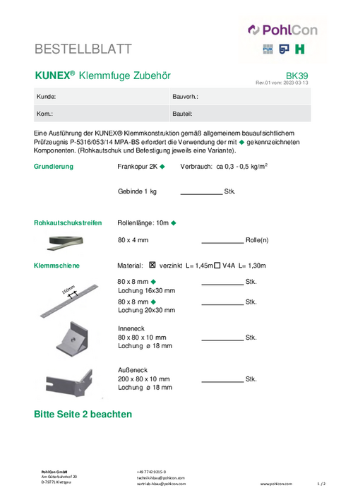 Order sheet KUNEX® Clamp joint tape accessories (BK39)