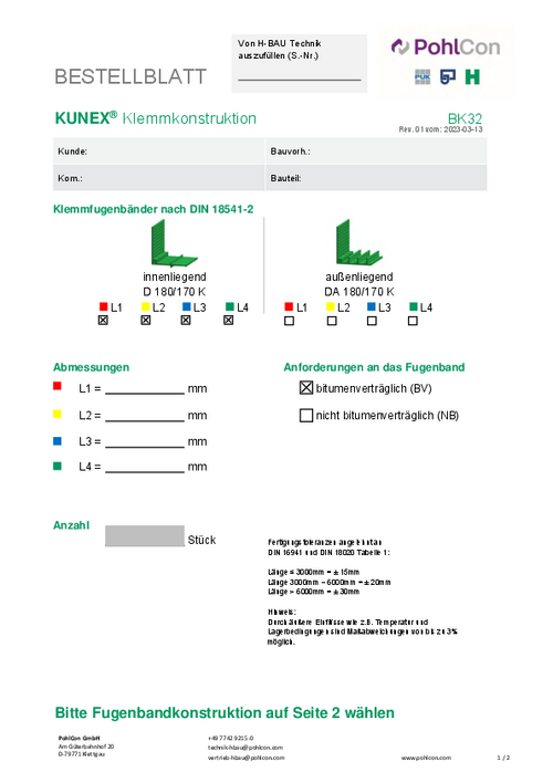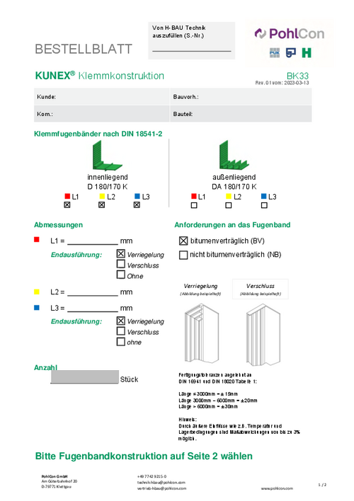 Order sheet KUNEX® Clamp joint tape accessories U (BK33)