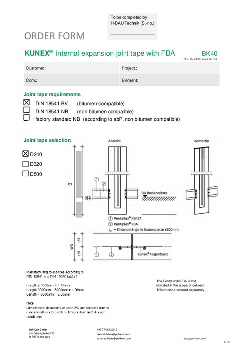 Order sheet KUNEX® internal joint with FBA (BK40)