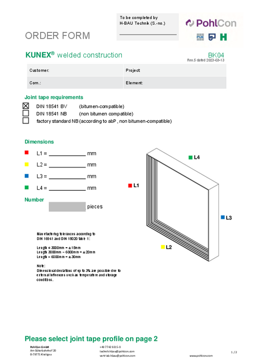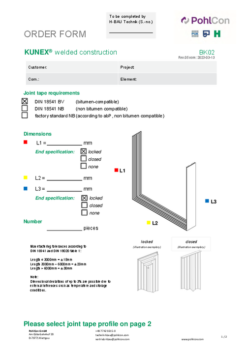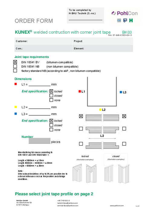 Order sheet KUNEX® Welded construction with corner U (BK03)