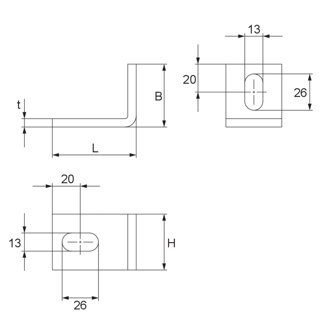The corner angle BL 5 is used to fasten bracket holders KHA / KHAL and KHU 40/57/60 to walls. The bracket is bolted to the bracket holder and dowelled to the concrete wall. It is made of hot-dip galvanised steel.
