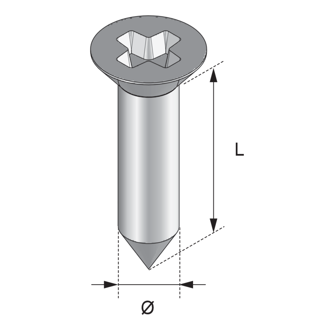 BSS countersunk sheet metal bolts are used for installing screed-flush ducts and underfloor units, e.g. when bolting strain relief devices or cover plates in place in mounting boxes. The screws are identified by a cross-slot in the screw head and are flush with the surface. They are made of galvanised sheet steel.