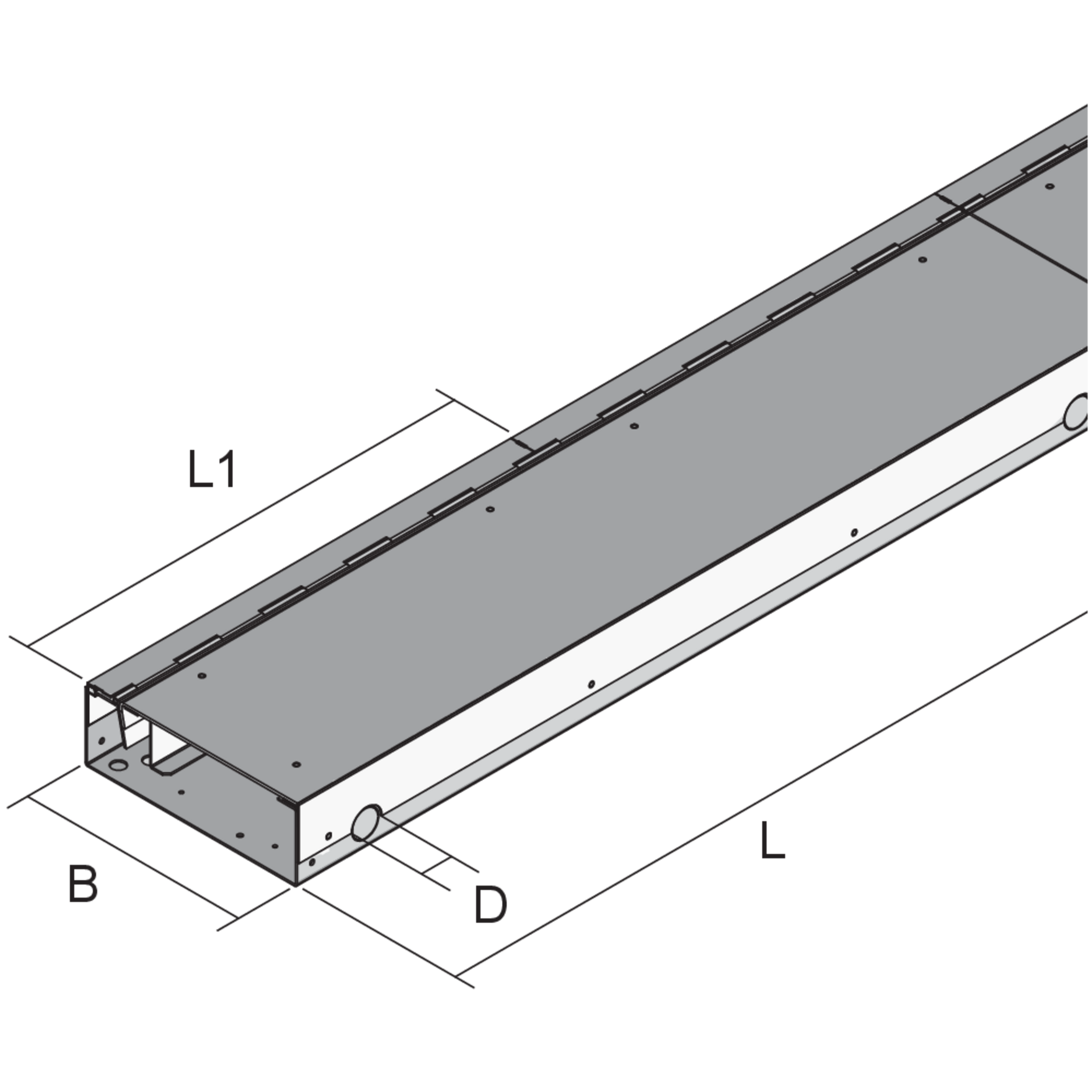 CHALI underfloor duct systems are screed-flush ducts with coverable brushes and removable covers. They are composed of pre-assembled, height-adjustable lower and upper parts including assembly covers and are suitable for dry-cleaned and wet-cleaned floor coverings in rooms with office traffic loads. The ducts are made of sendzimir hot-dip galvanised sheet steel (DIN EN 10346) and come in sections 2000 mm long and 252 mm wide. They can be used with floor coverings up to 25 mm thick and are installed at a minimum installation height of 93 mm. Their levelling range can be adjusted with the help of levelling bases. (UBDSLF 80: 93-155 mm; UBDSLF 150: 155-225 mm; UBDSLF 220: 225-295 mm).