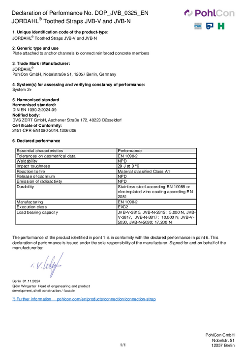 The toothed connection straps JVB-ZS with welded-on bolts are suitable for transmitting tensile and compressive forces. They are available in various lengths and made of either galvanised steel or stainless steel. The series 12 connection strap JVB-ZS is suitable for profiles of the anchor channels JTA K 28/15. Series 18 is suitable for K 38/17 rail profiles.