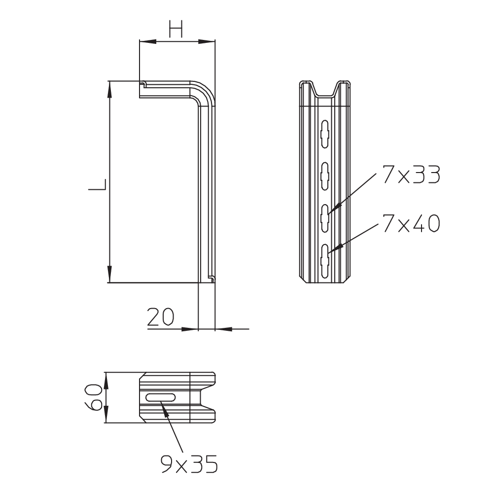 The bracket holder KDSL is designed for light loads in combination with the bracket KSL. It consists of a centrally perforated W/trapezoidal profile 60 x 20 mm. We provide components in various materials and surface finishes to ensure that the corrosion requirements are met for all sorts of applications. The KSL-SP spacer must be installed to prevent deformation of the profile due to the preload force of the fastening element.