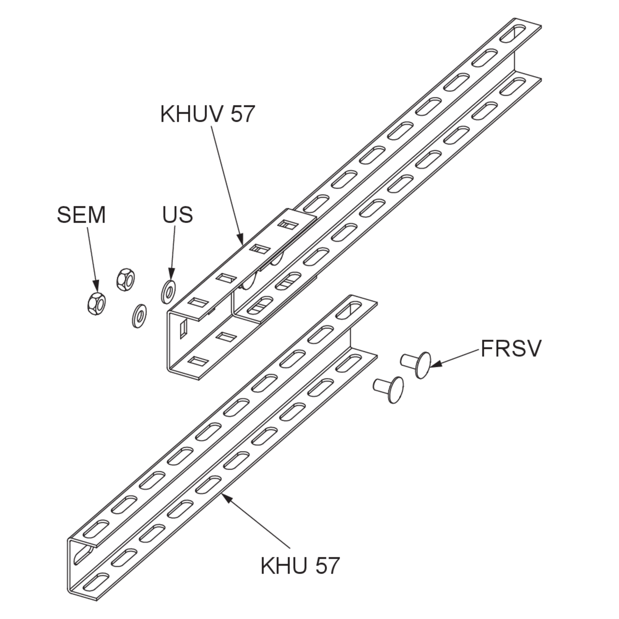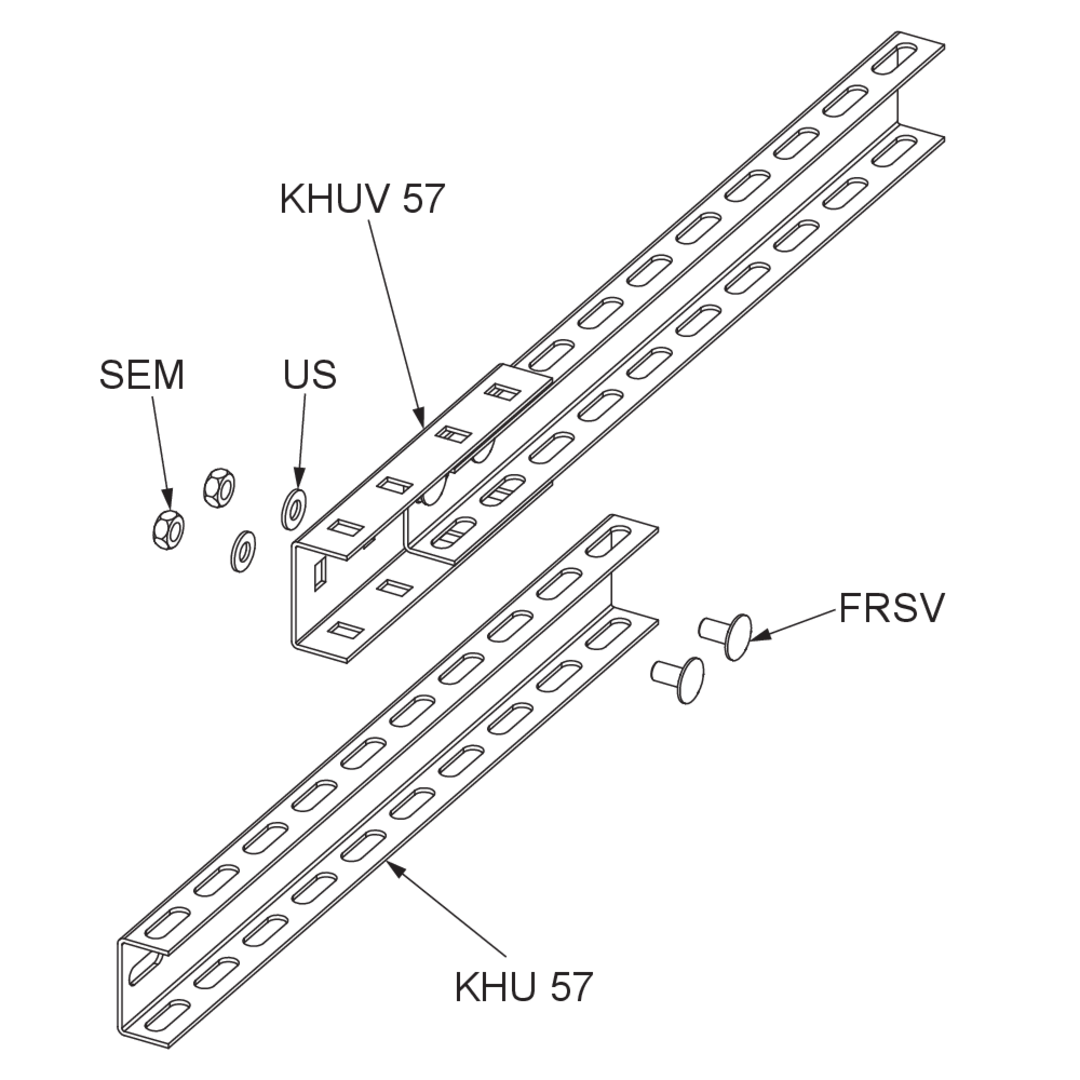 The connector KHUV 57 can be used to connect bracket holders KHU 57 to each other. We provide components in various materials and surface finishes to ensure that the corrosion requirements are met for all sorts of applications.