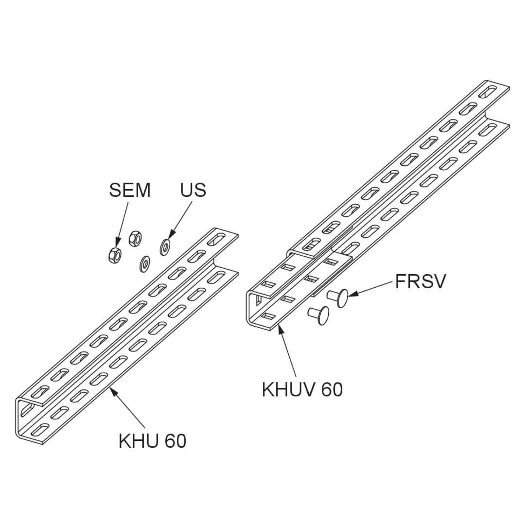 KHU 60 bracket holders and STU 60/62 vertical ladders can be connected using the connector KHUV 60. The connector is 51 mm high and 210 mm long. We provide components in various materials and surface finishes to ensure that the corrosion requirements are met for all sorts of applications.