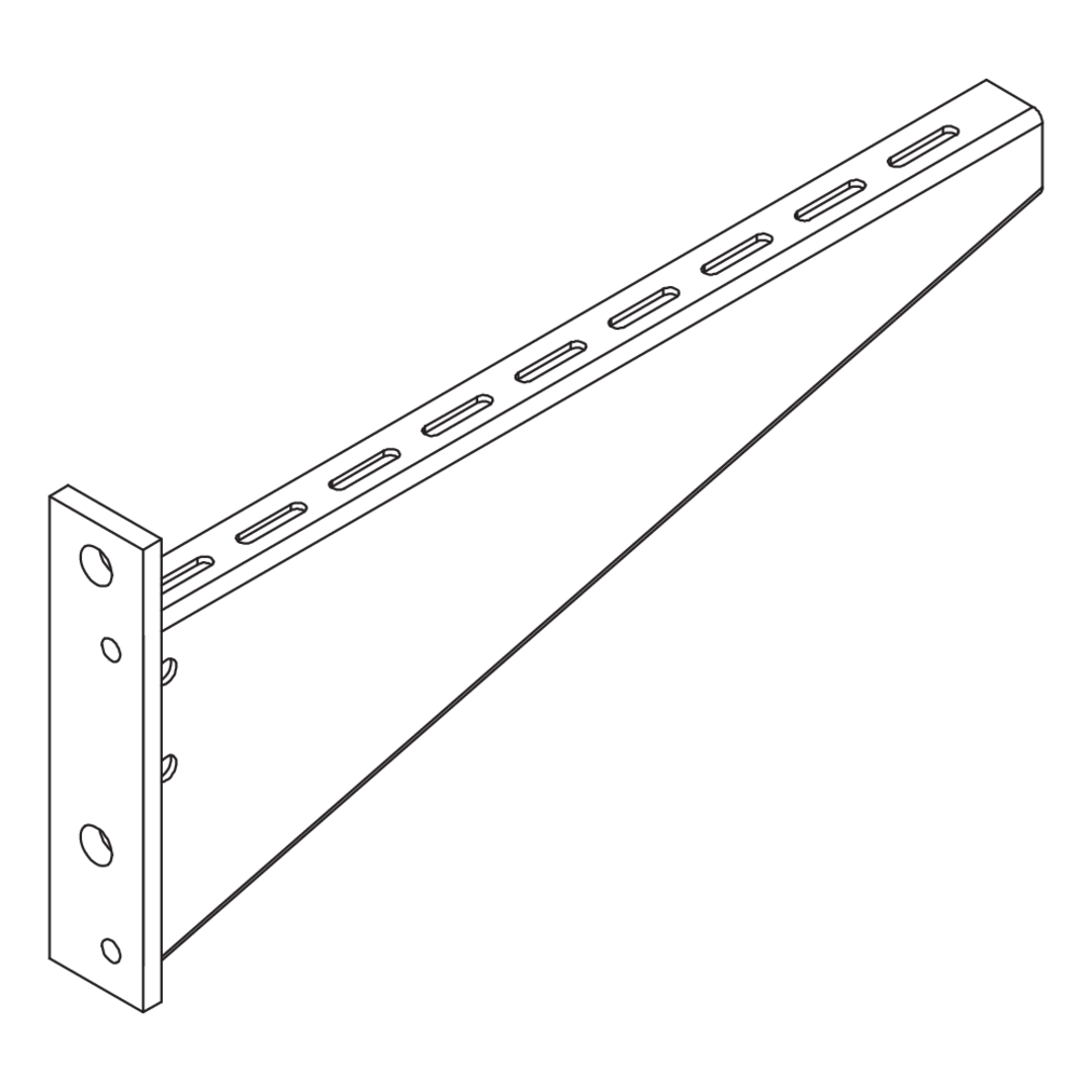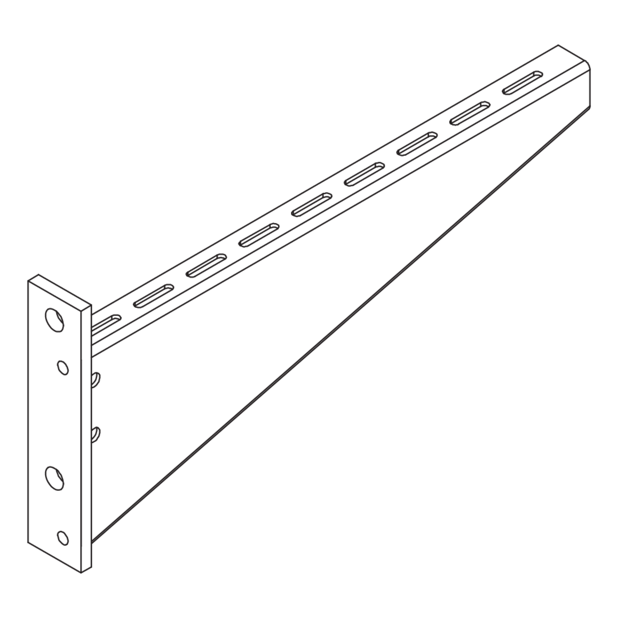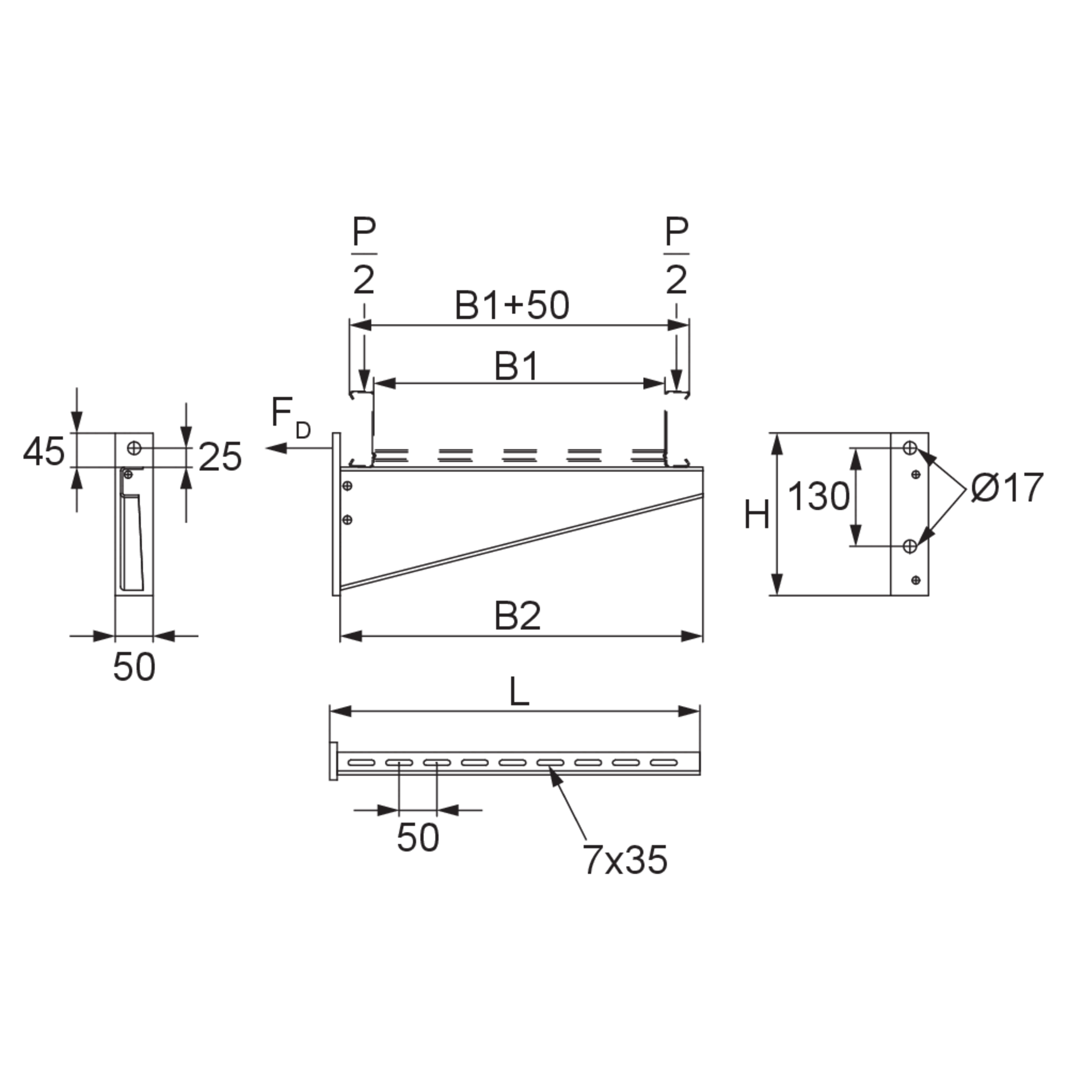 The wall/strut bracket KWS with welded-on back plate is intended for loads up to 7 kN. It is ideal for fastening wide-span trays. We provide components in various materials and surface finishes to ensure that the corrosion requirements are met for all sorts of applications. The bracket KWS is also used as a strut bracket in the U support system. FD/P: factor for calculating the dowel load FD with the actual bracket load P or the sum of the actual bracket loads. The stated load values only apply if the product is adequately anchored to the force-absorbing substrate or is attached to suspension struts in accordance with the instructions.