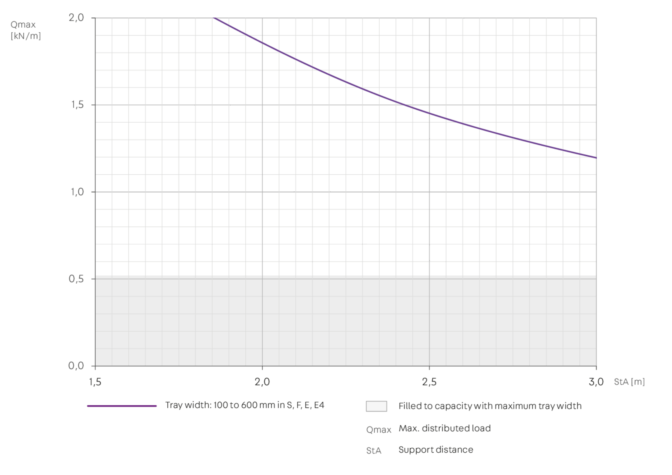 Cable load: ≤ 10 kg/m, ≤ 20 kg/m, ≤ 30 kg/m