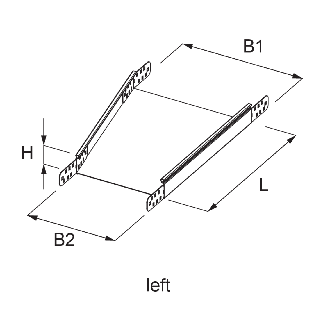 Kabelrinnen-ReduzierungHöhe60 mmBreite 1200 mmBreite 2100 mmLänge500 mmGewicht je Lagermengeneinheit1.582 kgIncluded accessories - RR 60-30F