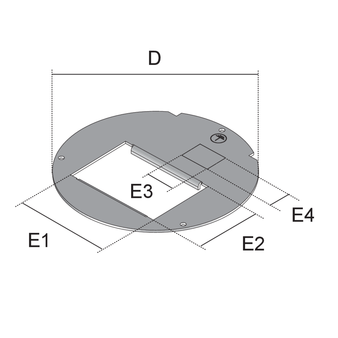 Mounting plate BODODiameter (mm)114 mmfitting dimension E163 mmfitting dimension E240.5 mmInstallation dimensions E319.5 mmInstallation dimension E414.9 mmcolorSteelWeight per storage unit0.091 kg