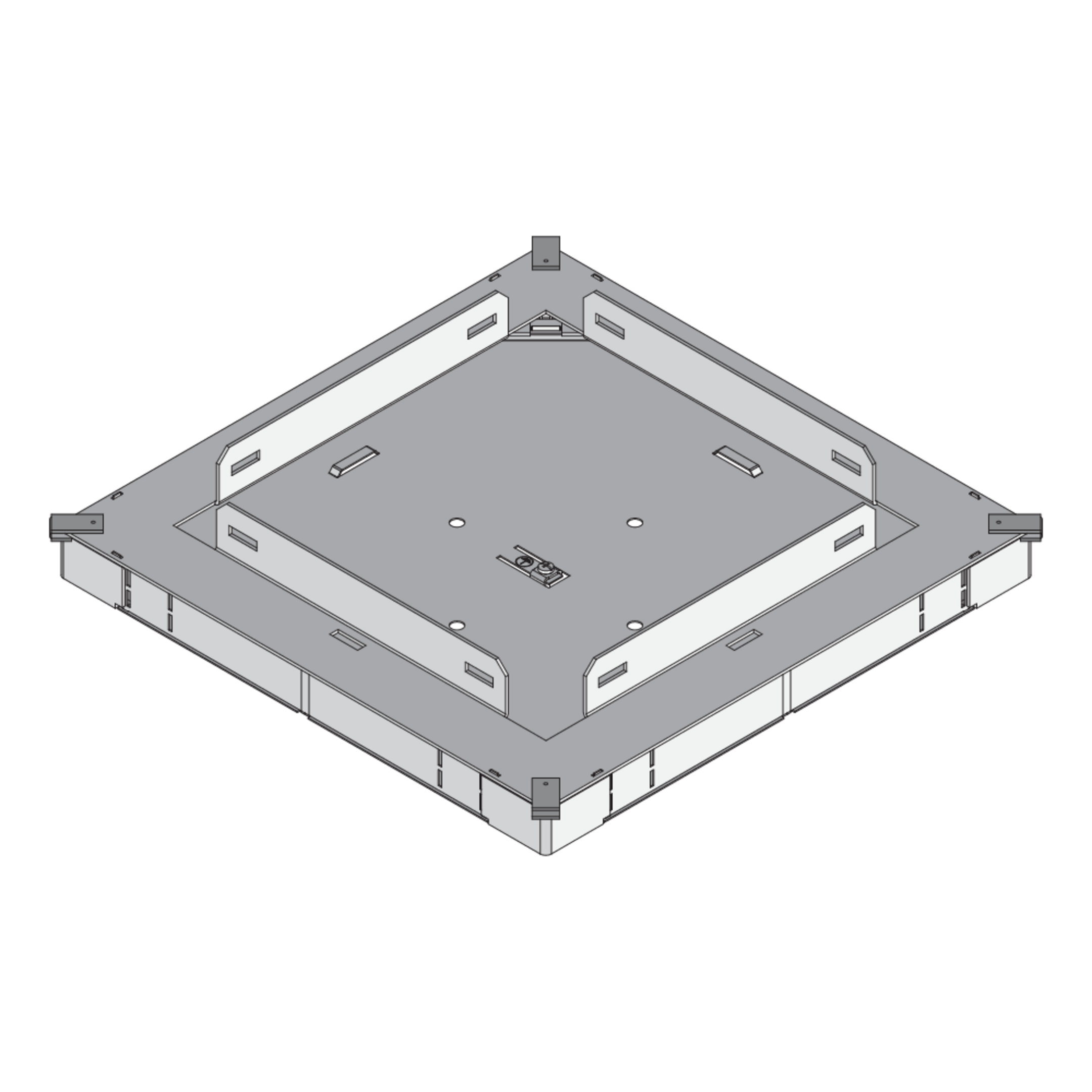 The UDO250 3V screed junction box is certified to DIN EN 50085-2-2 and developed for use in the screed-covered duct system UKO. Constructed from sendzimir hot-dip galvanized steel sheet to DIN EN 10346, it provides durability and corrosion protection.