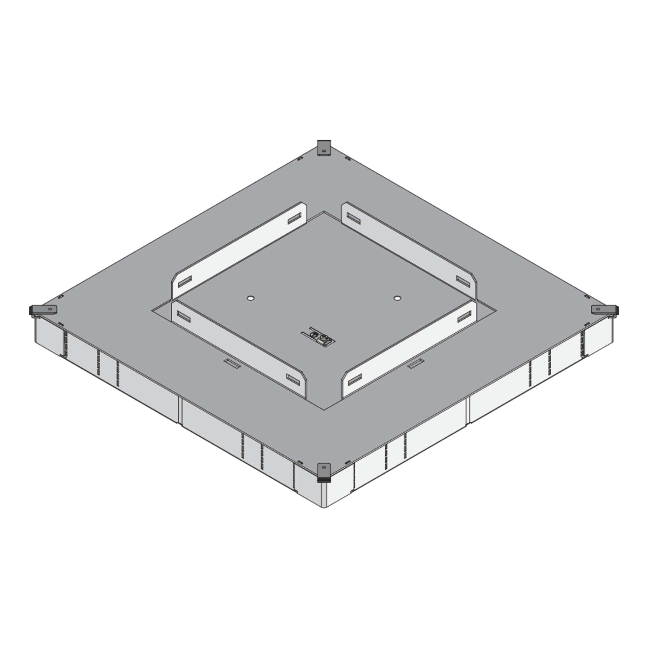 The UDO350 3V screed junction box is certified to DIN EN 50085-2-2 and developed for use in the screed-covered duct system UKO. Made from sendzimir hot-dip galvanized steel sheet to DIN EN 10346, it offers strong mechanical stability and corrosion resistance.