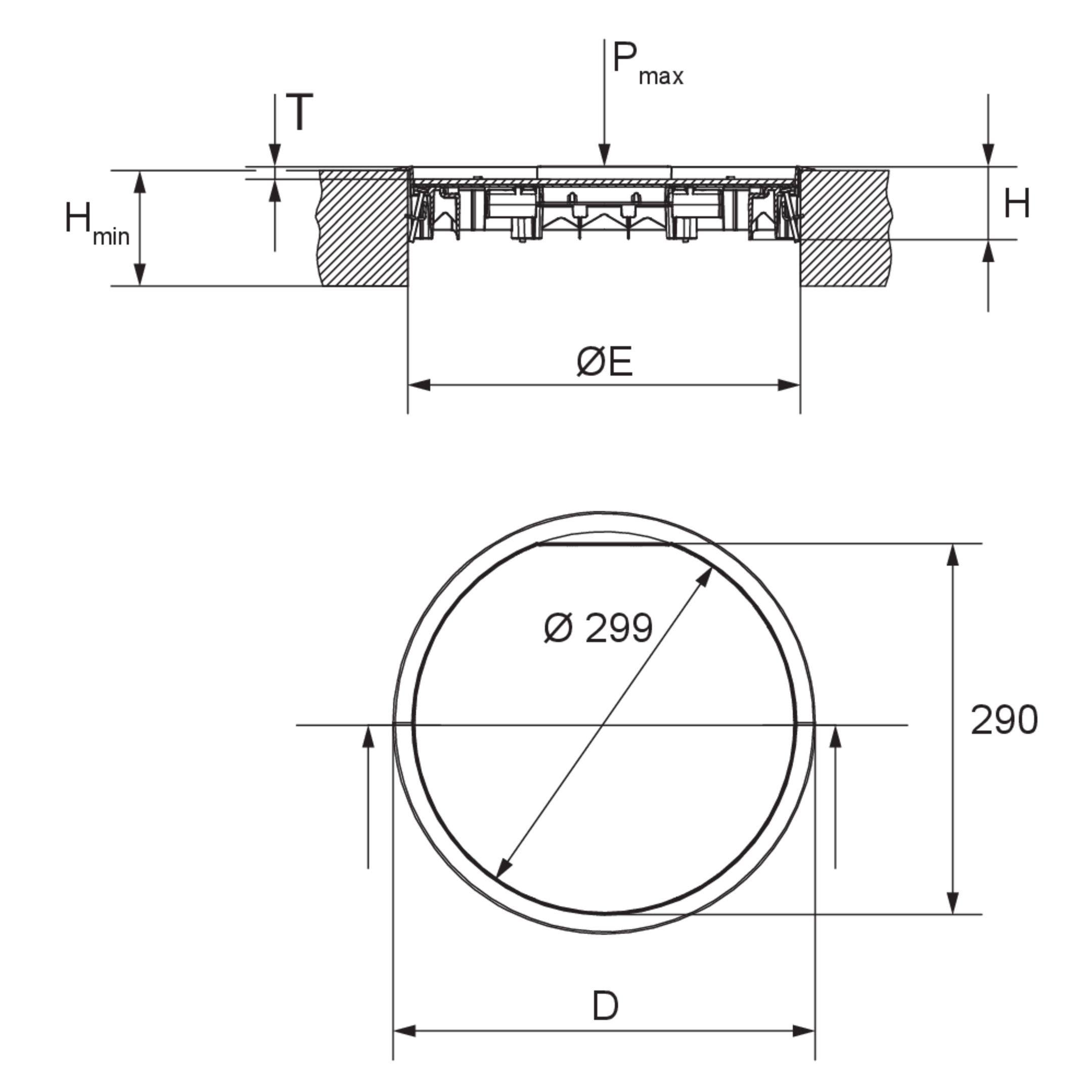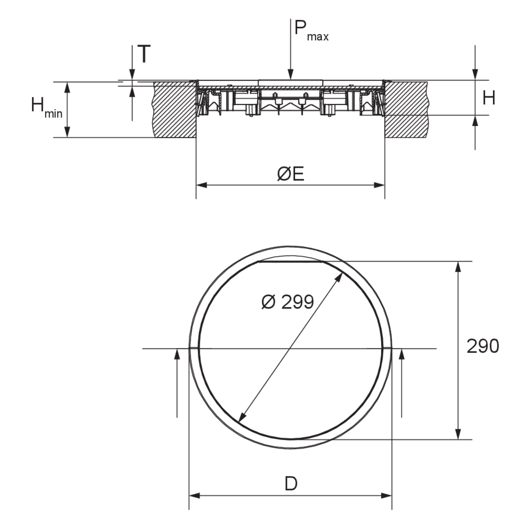 The installation units UEB3 R are round dummy cover units that are used in assembly covers, UBDHB floor sockets and raised or false floor openings. They act as a mounting frame for three mounting boxes and are suitable for dry-cleaned rooms with office traffic loads. The cover units have a carpet protection frame and are supplied with UDKS3-VR universal fixing claws. The covers and frames are made of polyamide with matt surfaces and the insert is made of hot-dip galvanised sheet steel. They have an IP protection rating of IP 30 in an unused condition, a minimum installation height of 54 mm, a maximum load of 2.00 kN and installation dimensions of 307 mm.